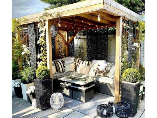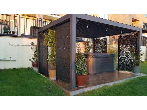 Die Moucharabiya ist die perfekte Außenmarkise, um Ihrem Garten Stil und Privatsphäre zu verleihen. Inspiriert vom traditionellen Fensterdesign der arabischen Architektur, wird es eine wunderschöne Ergänzung für Ihren Garten sein.