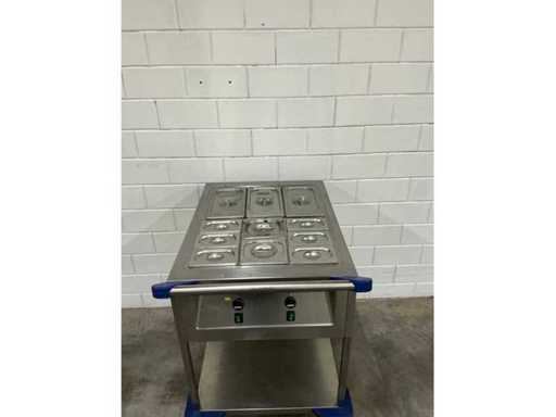 Mobiler au-bain marie-Trolley, 2 separat verstellbare Zonen, ausgestattet mit verschiedenen GN-Behältern mit Deckel.