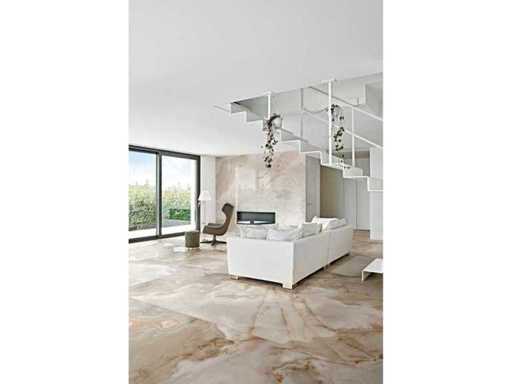 Fliese Onyx Noisette matt 60x120 cm, gleichgerichtet, 43,2 m², 9 mm dick, hergestellt in Italien, keramische Boden- und Wandfliesen, frost- und kratzfest, 1 Palette 80x120 cm, ca. 860 kg Gewicht