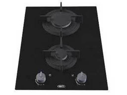 Herd, Gas, 2 Brenner, Gas auf Glas, 38 cm, 3 kW Brenner, gusseiserne Pfannenstützen (neu, aber im Glas gesprungen)