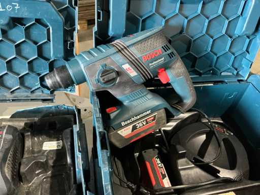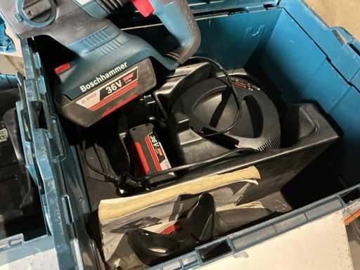 1x GBH 36V-EC kompakter Drehhammer, mit 2x 36V Batterie und Ladegerät, s/n 609001508; 1x GDS 18V-LI Schlagschrauber, mit 2x 18V Batterie und Ladegerät; 1x GNA 18V-16 Nibbler, mit 2x 18V Batterie und Ladegerät, s/n 807000007