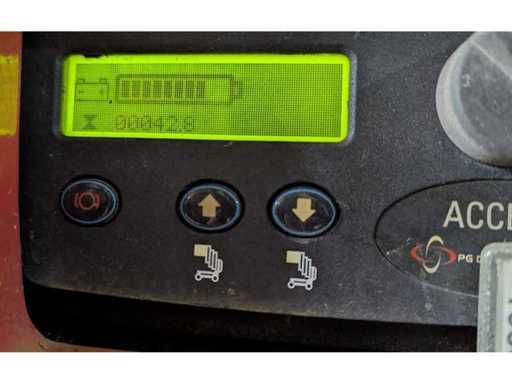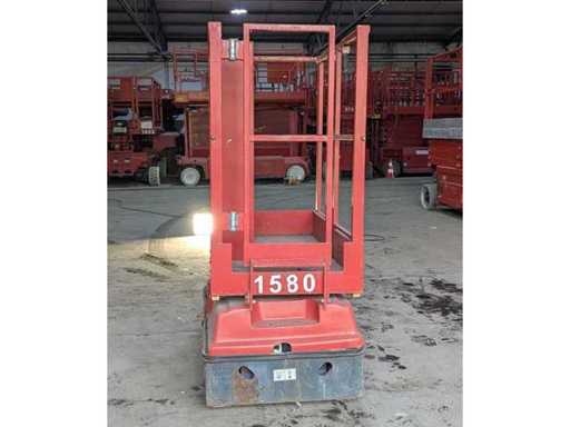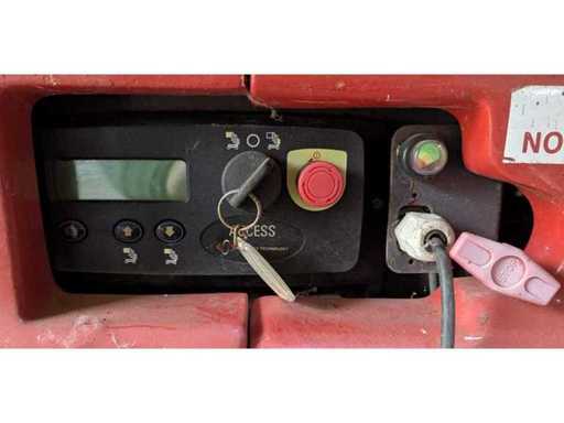 Interne Nr. 1580, Bodenfreiheit 0,03 m, nur Inneneinsatz, weiße Reifen, extrem wendig, dreht auf der Stelle, Plattformlänge ausgeschoben 1,72 m, Anschlagpunkte für Rückhaltepunkte (PSA) vorhanden. Hinweis Batterien defekt, Fahren in Ordnung, Heben ohne Funktion,