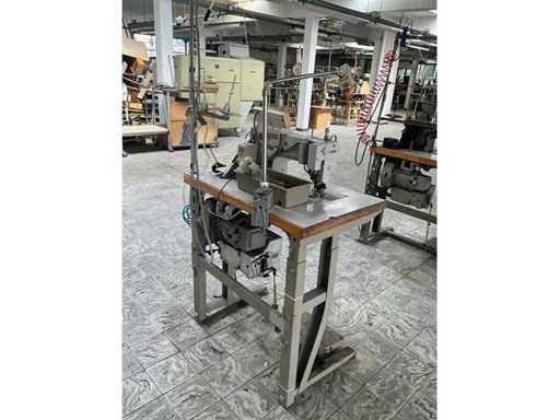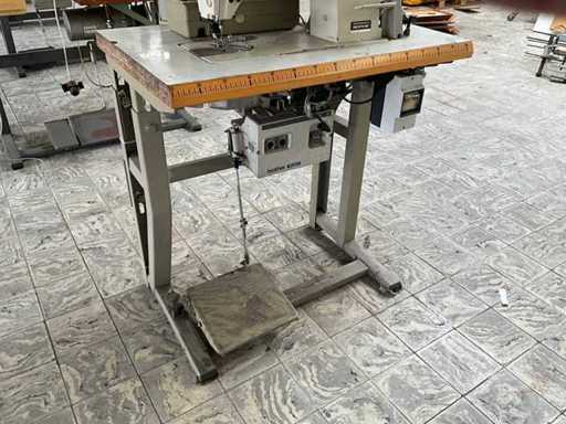 Auf Metallbasis/-tisch und ausgestattet mit Fußpedalsteuerung und Motor. Ungefähr 80 x 50 x 155/160 cm hoch.