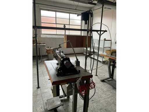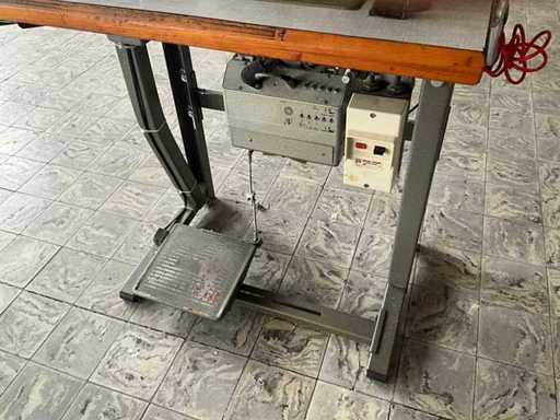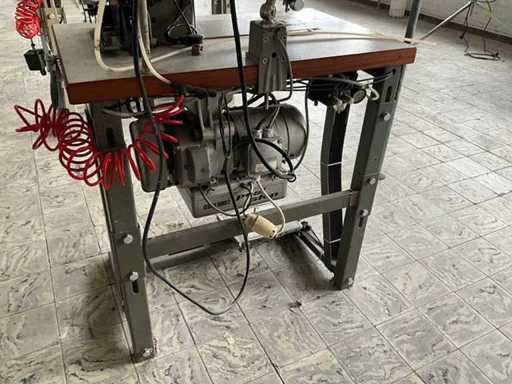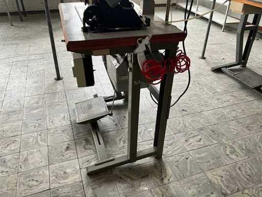 Auf Metallbasis/-tisch und ausgestattet mit Fußpedalsteuerung und Motor.