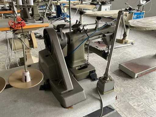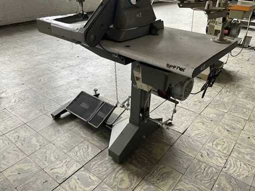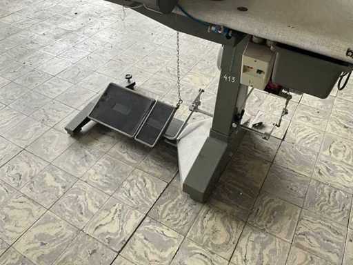 Auf Metallbasis/-tisch und ausgestattet mit Fußpedalsteuerung und Motor.