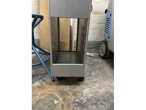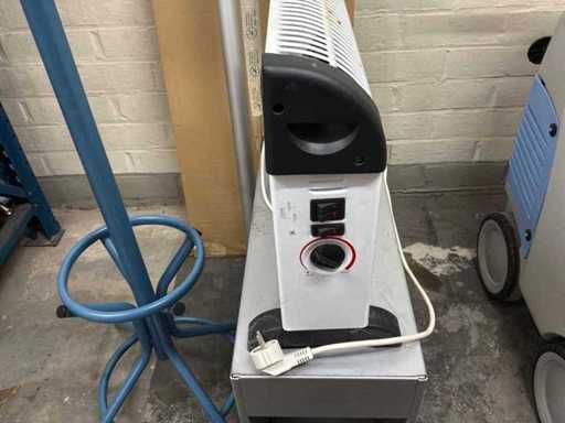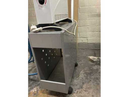 1x Garderobeständer, 1x elektrischer Heizlüfter, 1x Aufbewahrungsschrank, 1x Metallschrank