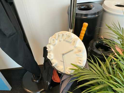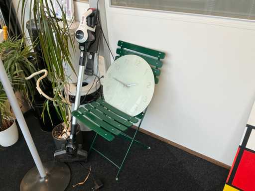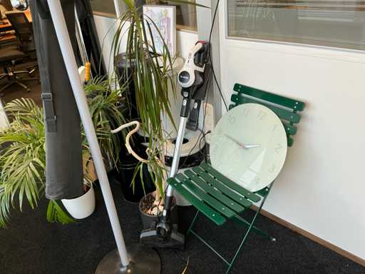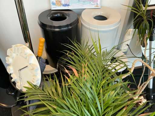 Bestehend aus 3 Garderoben, 2 Pflanzen, einem Stuhl, 2 Uhren, 7 Mülltonnen, Bosch Akkustaubsauger.