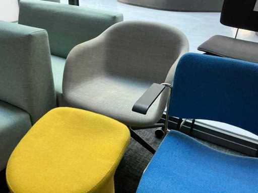 Bestehend aus 2 Bänken, einem Barhocker, einem Konferenzstuhl, einem Speisestuhl und einem Ottomane.