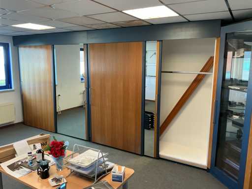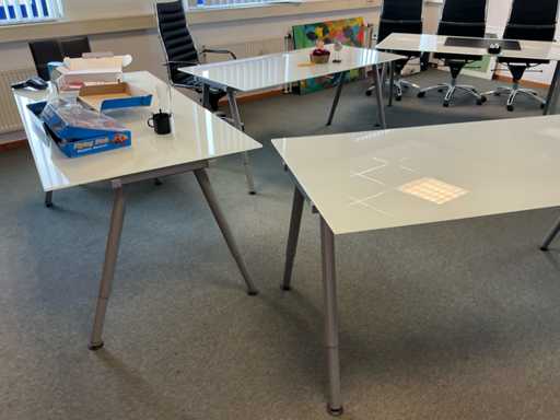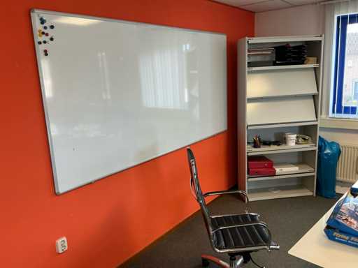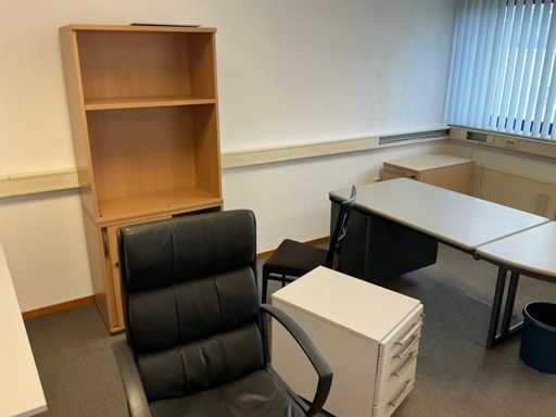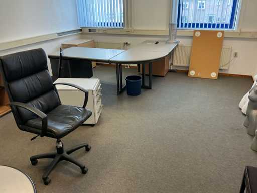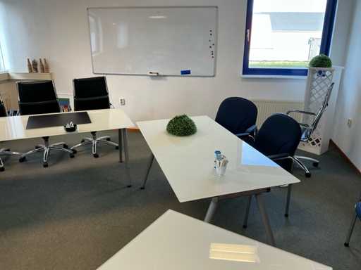 Bestehend aus: 7x Schreibtisch, 9x Bürostuhl, 8x Konferenzsessel, 2x Whiteboard, Schrank, Wanddekoration, 3x Wandschränke, 2x Schubladengerät, 4x Schaufensterpuppe. Das Grundstück befindet sich im ersten Stock und ist über Treppen zugänglich. Der Käufer ist dafür verantwortlich, das Grundstück auszuziehen. (Die drei schwarzen Konferenzstühle auf dem ersten Foto gehören nicht zu dieser Gruppe)