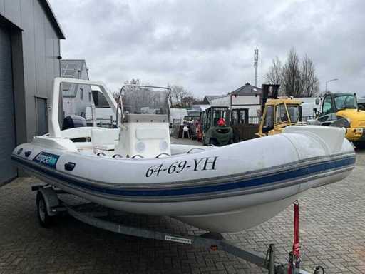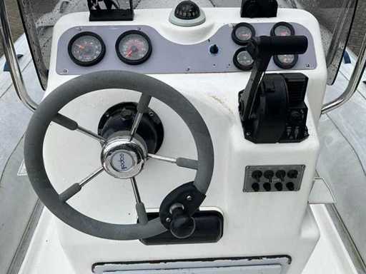 Ausgestattet mit einem "Evinrude"-Flight-Ram-Einspritzmotor mit 175 PS; Tragfähigkeit 1140 kg; Konsolentyp VIII; 426 Stunden, Transportmaße 7500x2500x3000mm am Anhänger, bitte beachten Sie! Ohne Anhänger!
