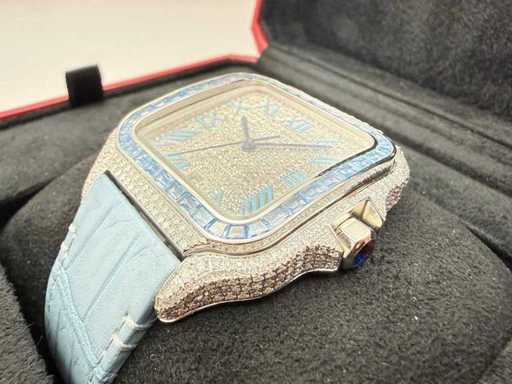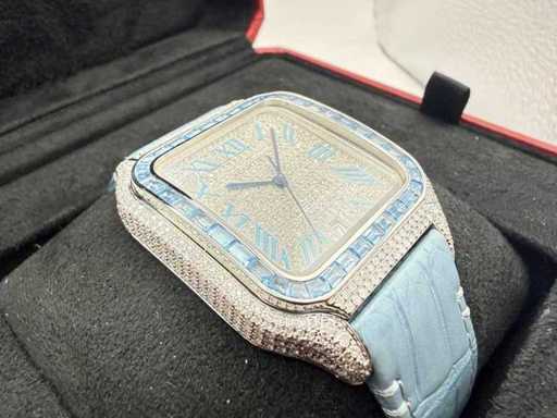 Cartier Santos "Large" | ICEED Out Naturel Diamonds | Hellblau