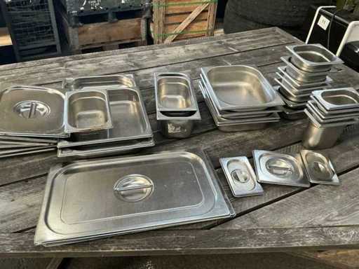 Komplett mit etwa 10 verschiedenen Deckeln, darunter in verschiedenen Größen.