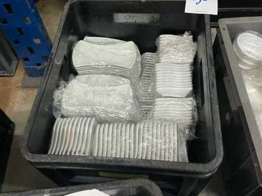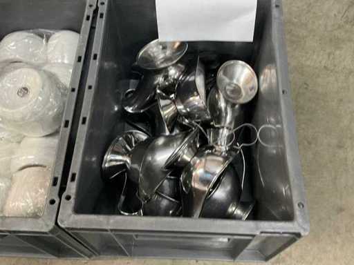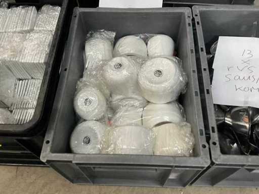 einschließlich Edelstahlschalen; quadratische Untertassen; Amuse-Bouche-Schalen; Zuckerschalen usw.; inkl. (5x) Stapelkiste