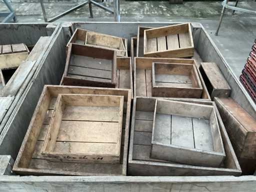 Verschiedene Abmessungen wie 24x22x8,5cm, 25,5x26,5x8cm, 36x36,5x9cm. In und inklusive 2x Holzkiste