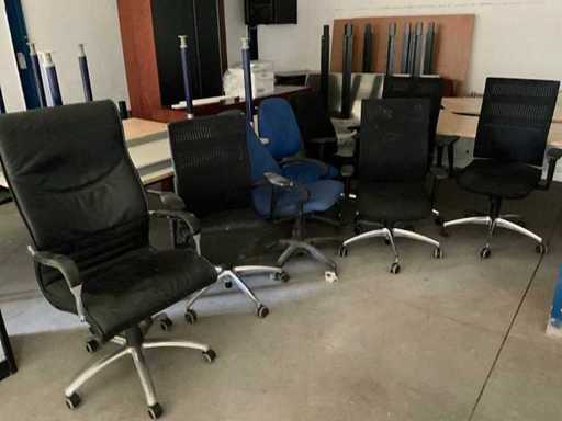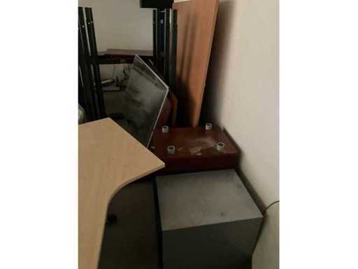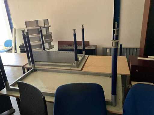 Ungefähr 16 Tische/Schreibtische, 8 Bürostühle, 6 Schubladeneinheiten, 4 Schränke, 1 Aktenstand und sonstiges mehr.