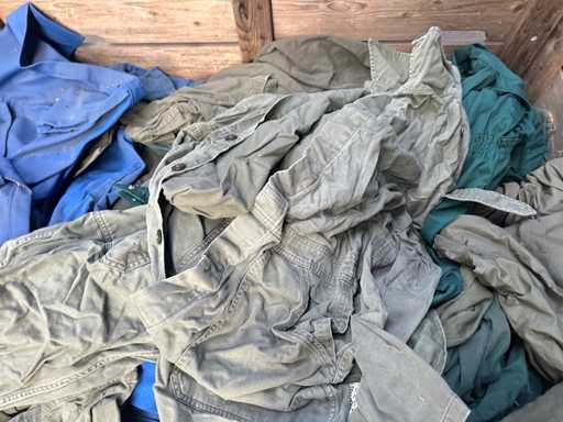 Diese Charge besteht aus mehreren Latzhosen in Blau und Grün