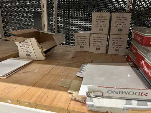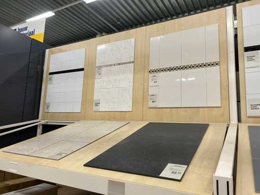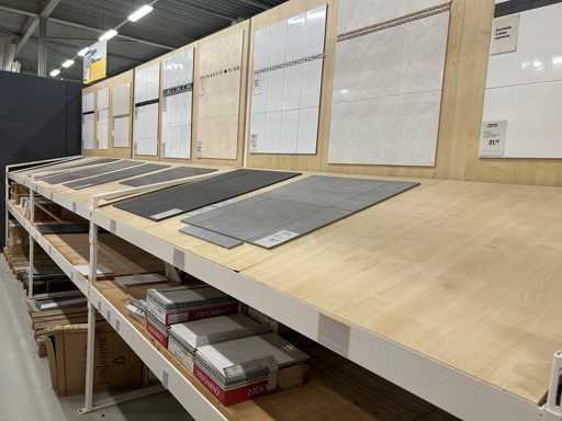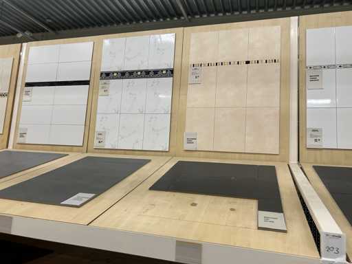 Verschiedene Verpackungs-Wand- und Bodenfliesen in unterschiedlichen Größen und Designs, Show-Modellplatten gehören dazu. Ausstellungsmodellplatten bestehen aus 118x90 cm 18 mm Spanplatten