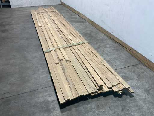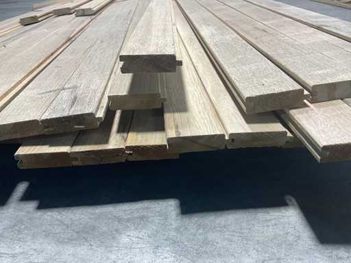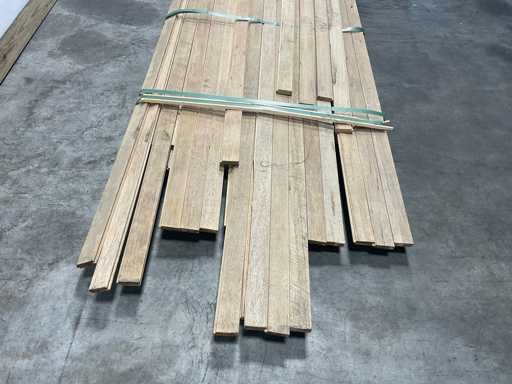 Mischen Sie verschiedene weiße afrikanische Eichenbretter, Fraké Nut und Nut, in verschiedenen Längen von 330 bis 520 cm x 6,5 x 2 cm dick.
