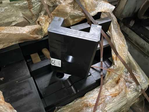 Palette mit Gummi-Torsionselementen. Maße lxwxh 35x26x14 cm