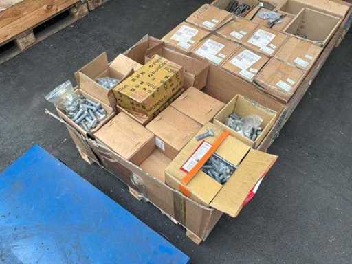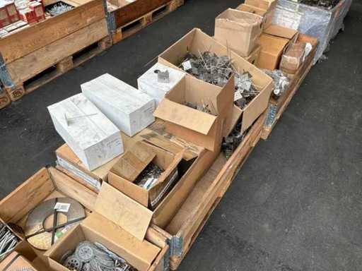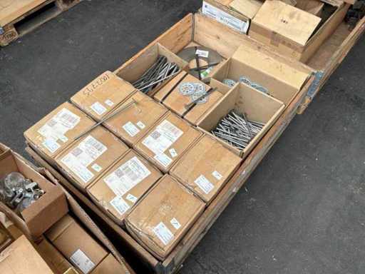 5 Paletten mit Installationsmaterial, bestehend aus: Isolierungsklebestiften, Bolzen und 1 Aufbewahrungskasten