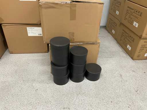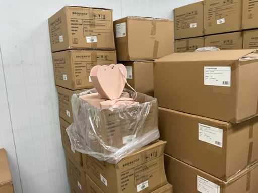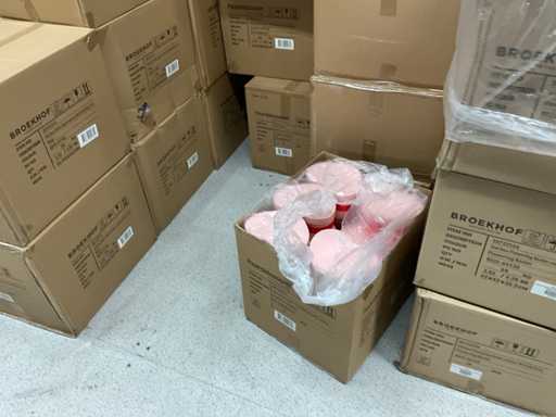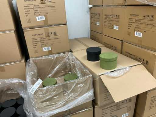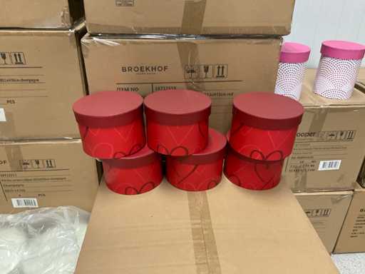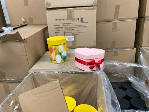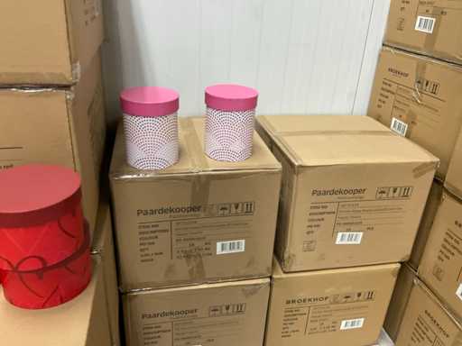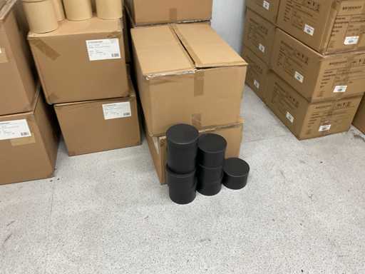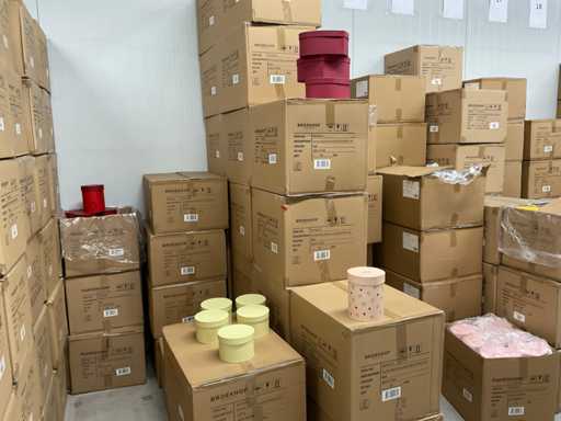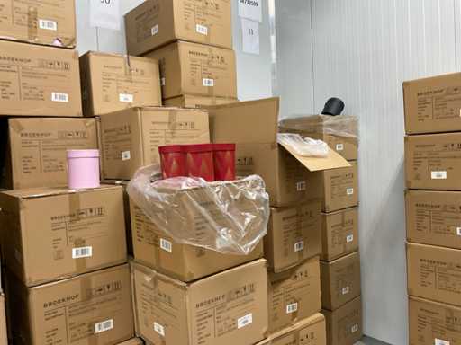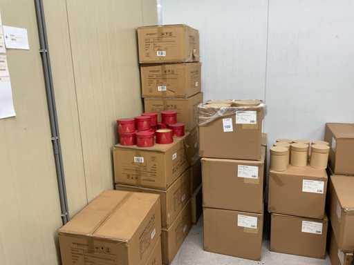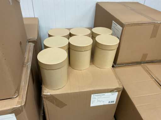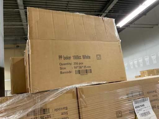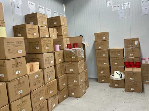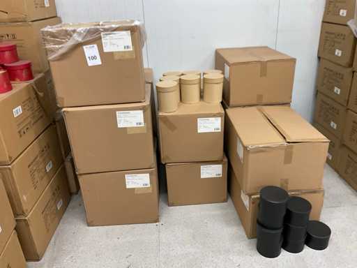 In verschiedenen Größen, Farben und Formen, einschließlich einer Palette mit Bechern für die Kartons.