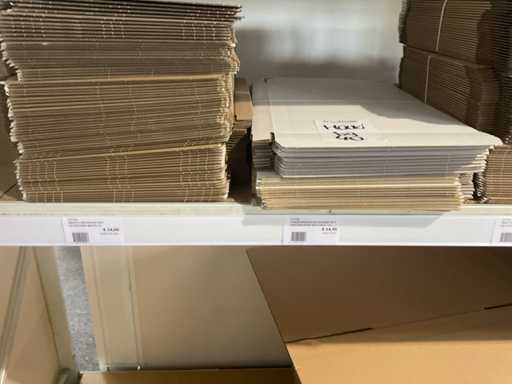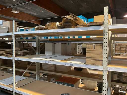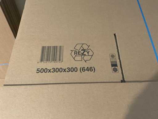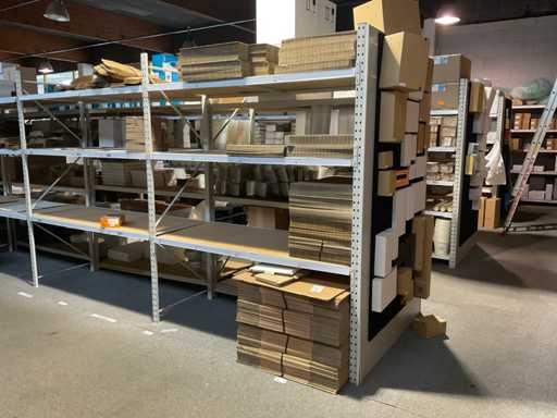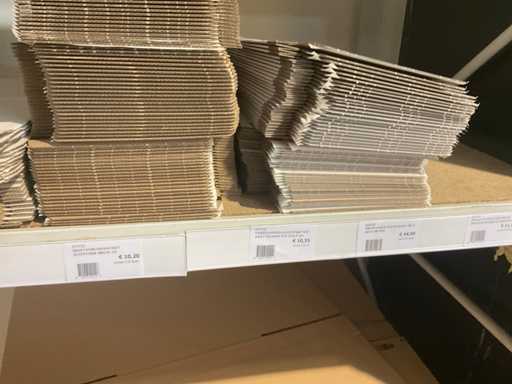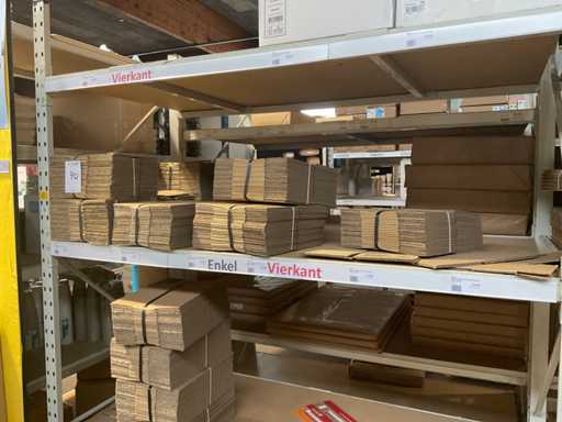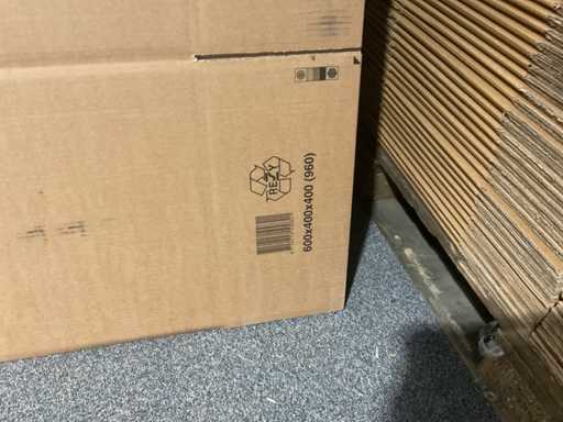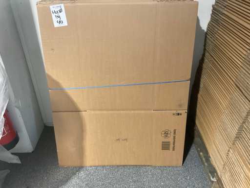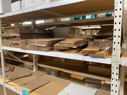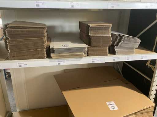 Die Charge von Kartons und Verpackungsmaterialien umfasst 1 Palettenkarton (500x300x300), 15 Kartons (600x400x400), Luftpolsterfolie und Wellpappe sowie den Inhalt des Regals. Ohne Rack. Der Käufer muss alle beschriebenen Teile mitbringen