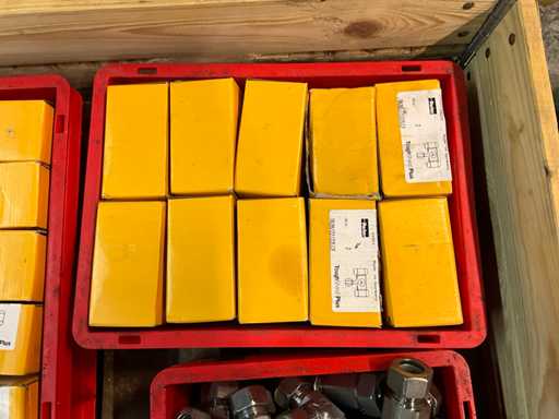 Bestehend aus verschiedenen Parker Tough-Shields sowie TR 28/22/22 T-Stücken, die für Hydrauliksysteme, Relais und Schläuche geeignet sind