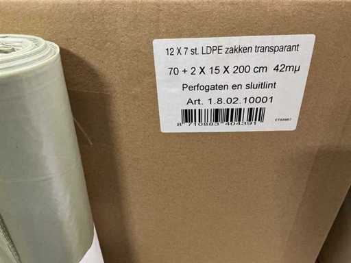 Charge von LDPE-Beuteln, transparent 70+2x15x200cm, Perfogate und Schließband (36x)