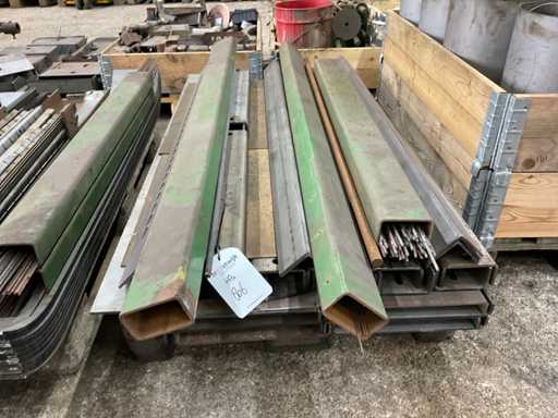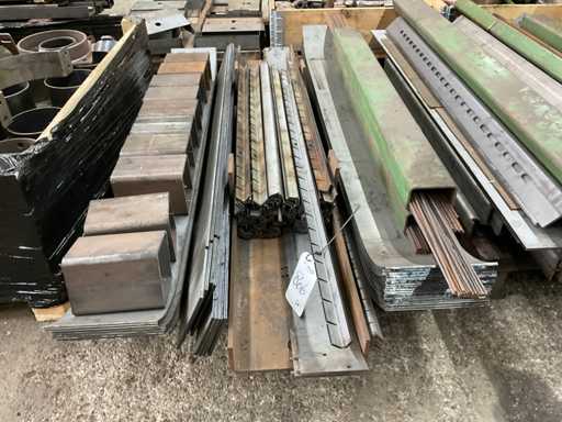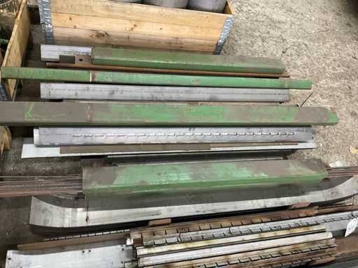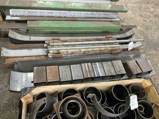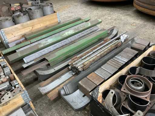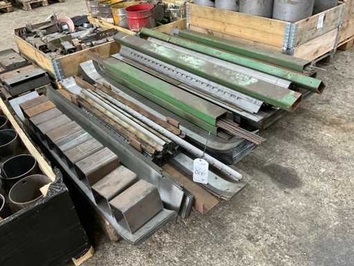 Zwei Paletten, darunter Schläuche, Streifen, Winkeleisen, Draht.