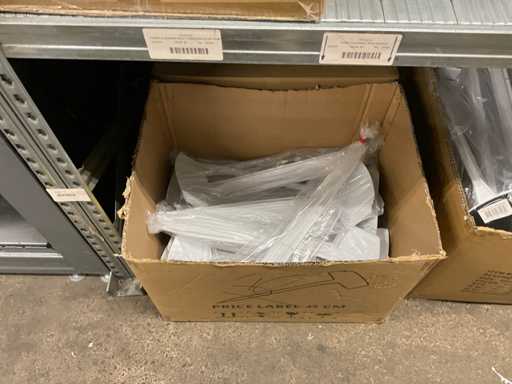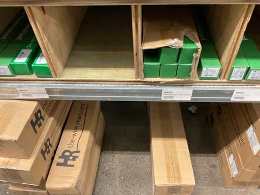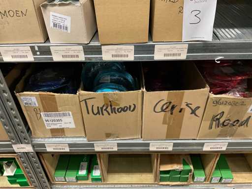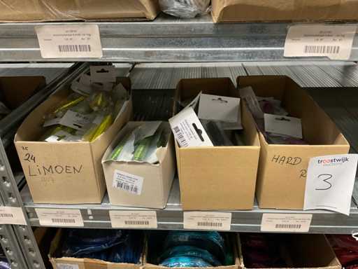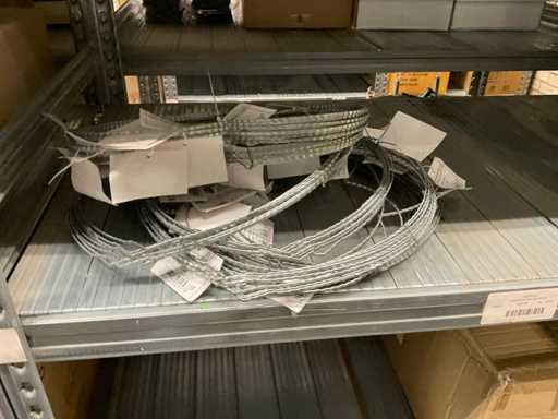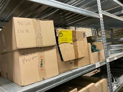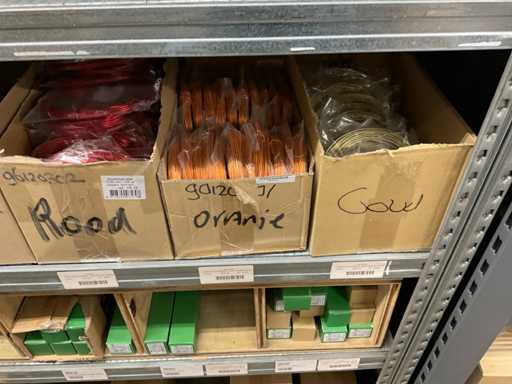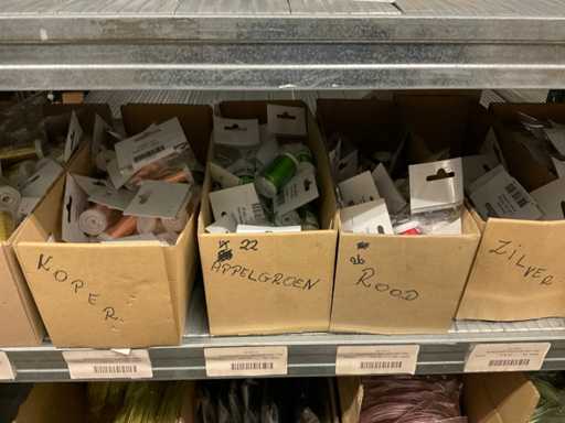 Inhalt von 2 Seiten des Regals, bestehend aus Wickeldraht, Türkränzen und Preisausschnitten, ohne Gestell