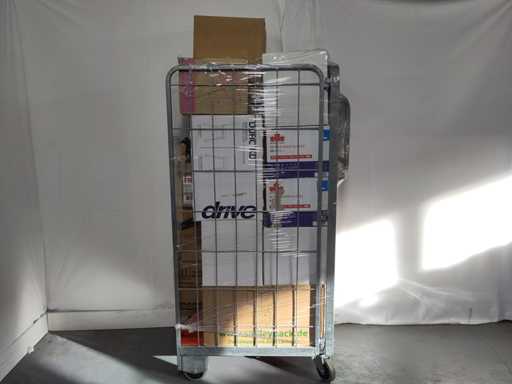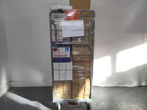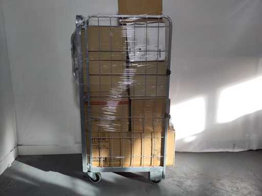 Volle Rollcontainer mit hauptsächlich Überbeständen, Überbefunden, Retouren. Rollcontainer nicht im Lieferumfang enthalten.