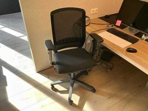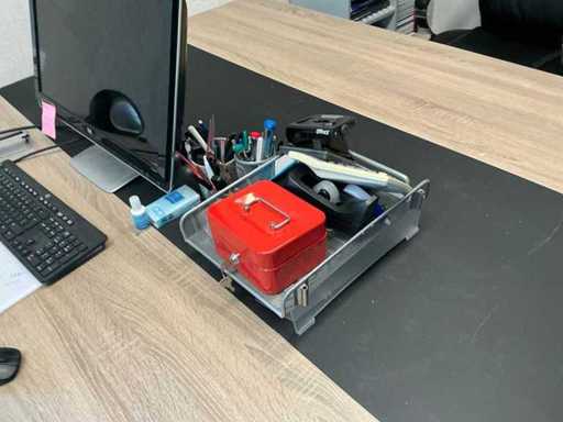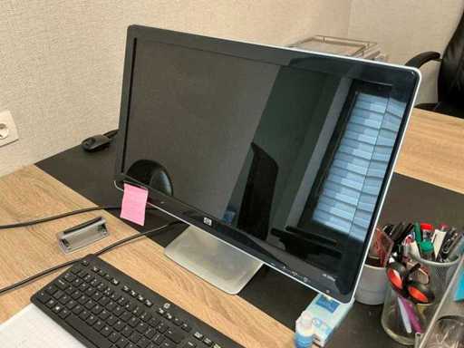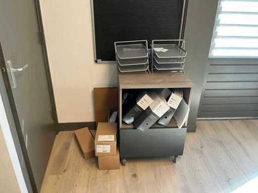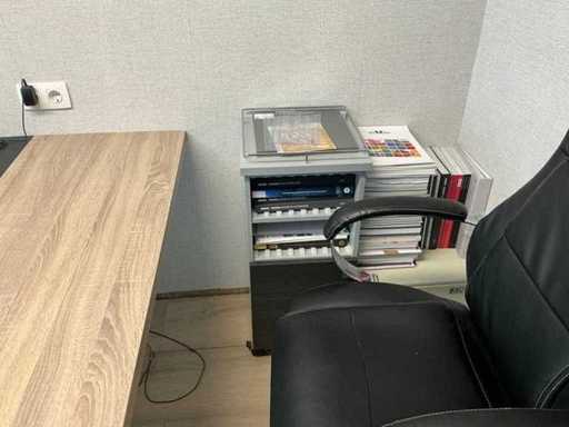 Bestehend aus einem Duo-Arbeitsplatz mit 2 Bürostühlen, 2 mobilen Schränken und einem HP 2310m Bildschirm. Ohne den Wandschrank mit Inhalt.