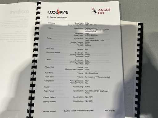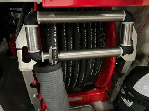 Perkins Dieselmotor, Typ 404DT-22T, 44.7 kW, 2800 U/min, Schaumtankvolumen 7 l., Wassertankvolumen 225 l., Vorschubdruck 10 bar, v.v. 300 bar Sprühlanze, 80 mtr, Schlauchtrommel