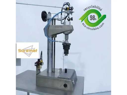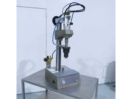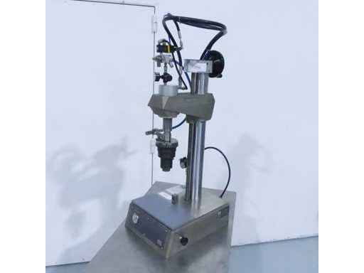 Halbautomatische Crimptischmaschine zum Crimpen von Ventilen oder Pumpen (aktuelles Format 20 mm), Möglichkeit von 13 bis 20 mm (Wechsel von Klemme und Adapter nicht mitgeliefert). Für Glas-, Aluminium- oder Kunststoffflaschen