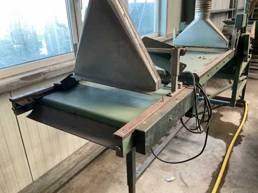 Geschwindigkeit des Förderbandes und des Aufzugsförderers sind einstellbar, 2x Absaugdüse mit Schlauch, Länge des Aufzugsbandes 2200 mm