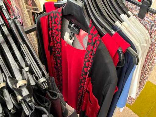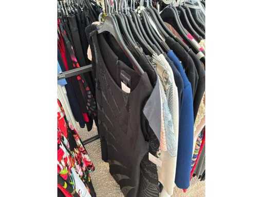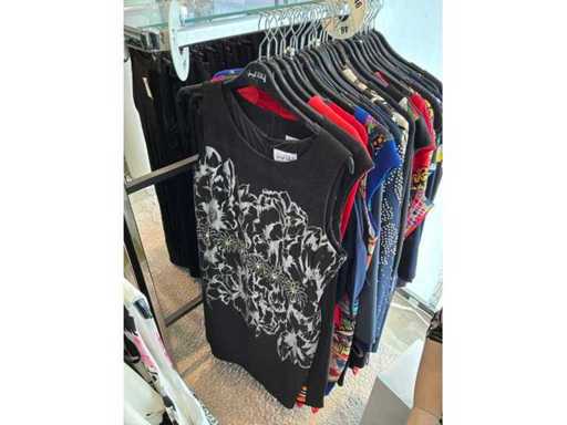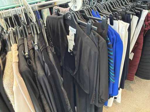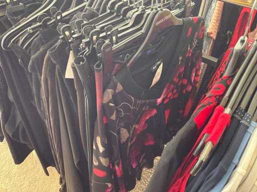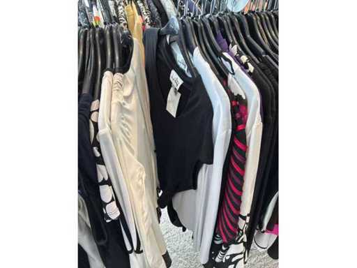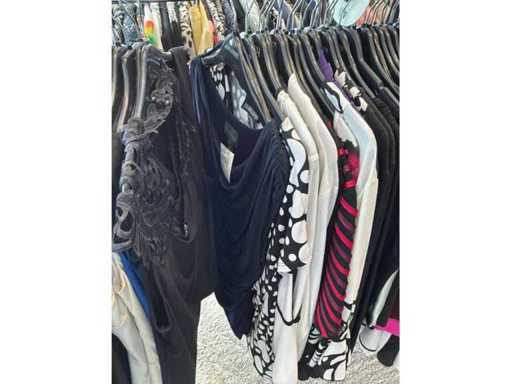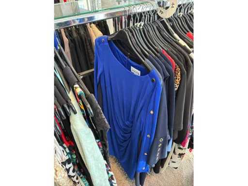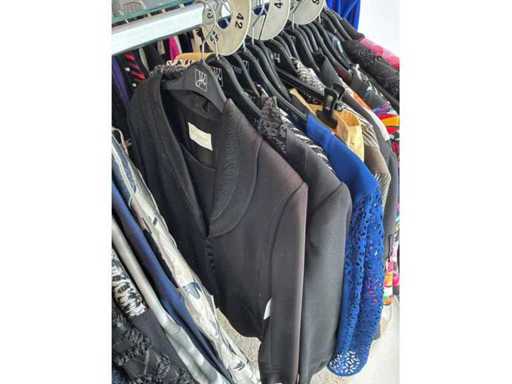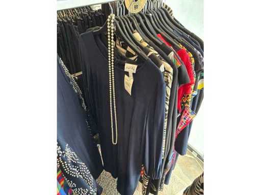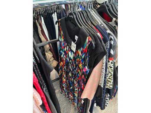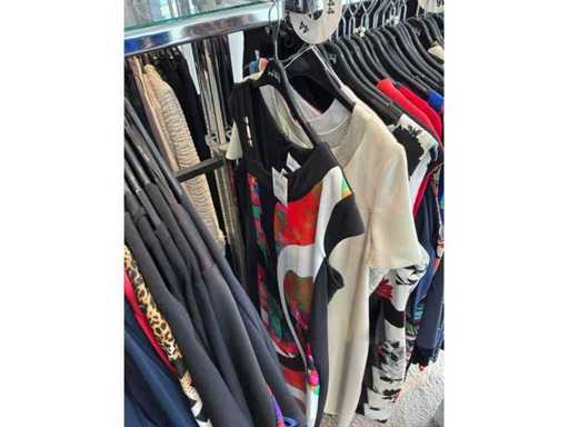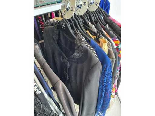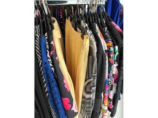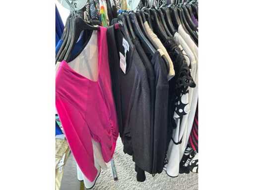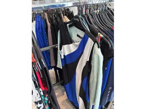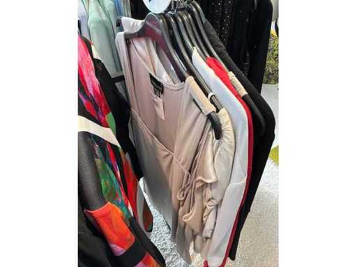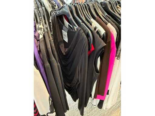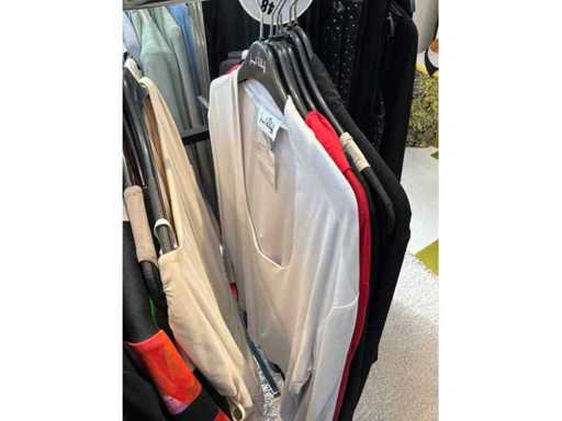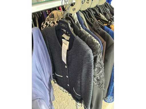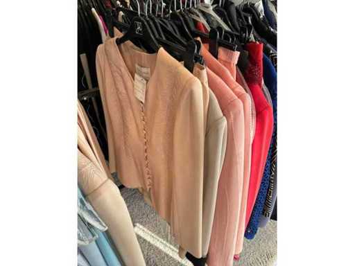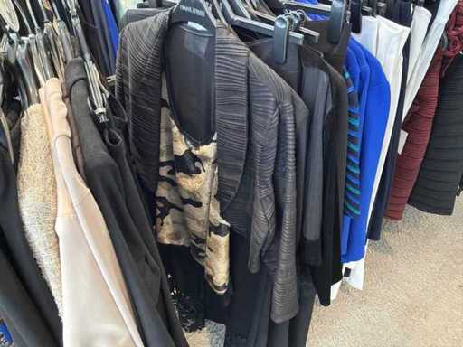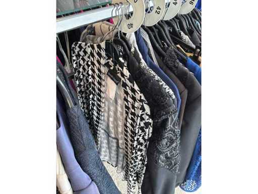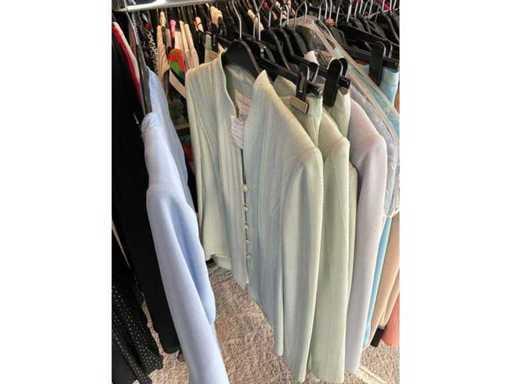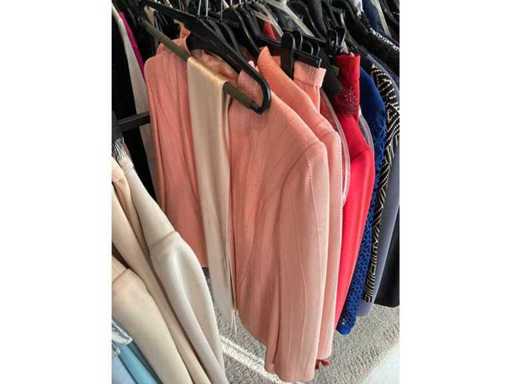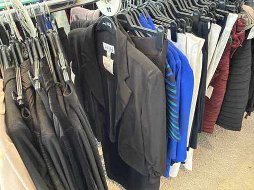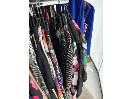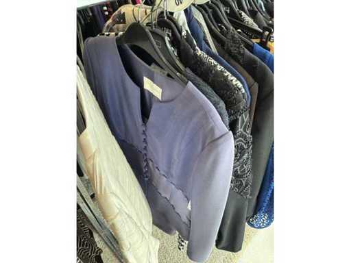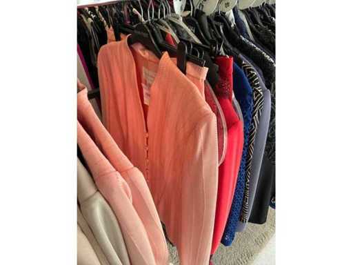 Bestehend aus: Blusen, Oberteilen, Kernen, Röcken, Hosen und einer Jeansweste/Körperwärmer. Von den Marken: Rabe, Faber Women, Joseph Ribkoff, Tom Bowker, Sommermann, Liola, Isabel de Pedro und Airfield. Sie variieren in den Größen von 36 bis 46. Kleiderregale sind nicht enthalten.