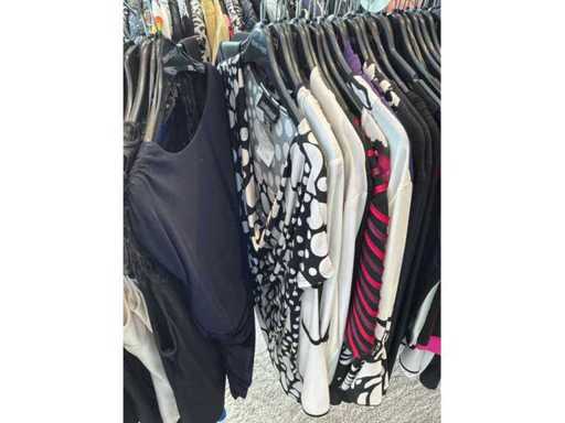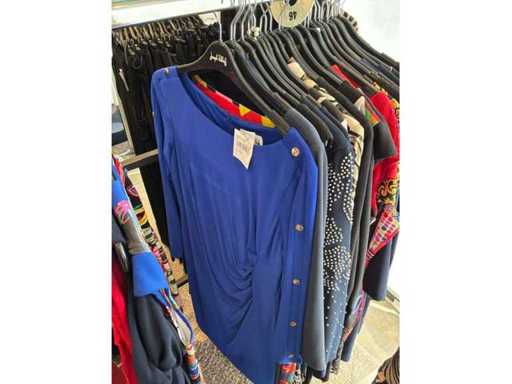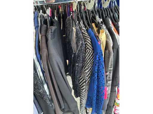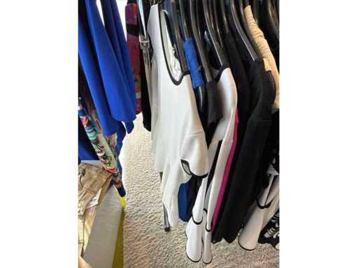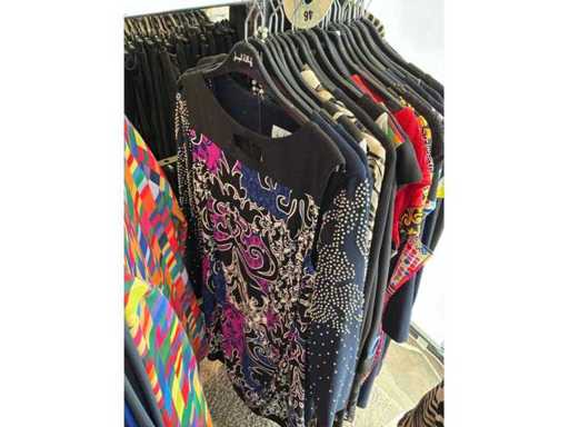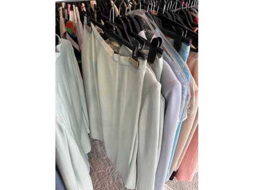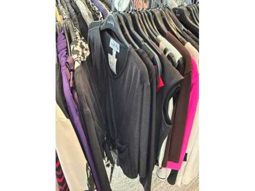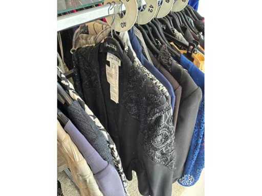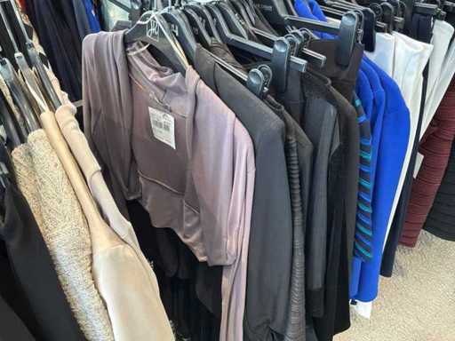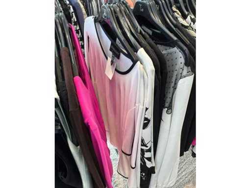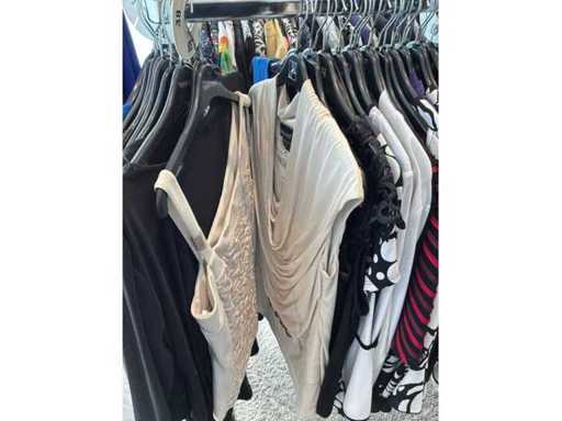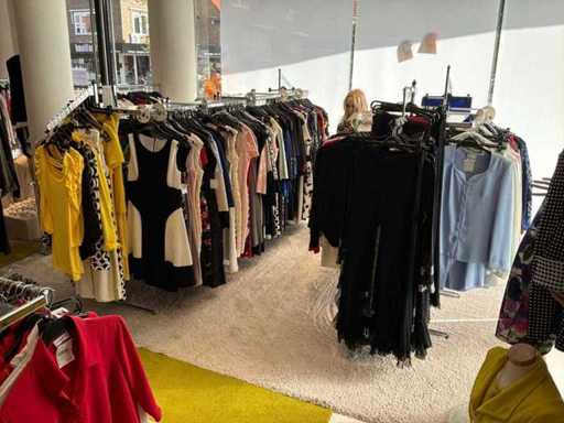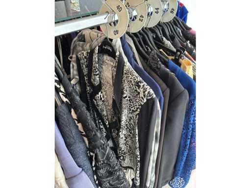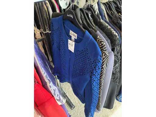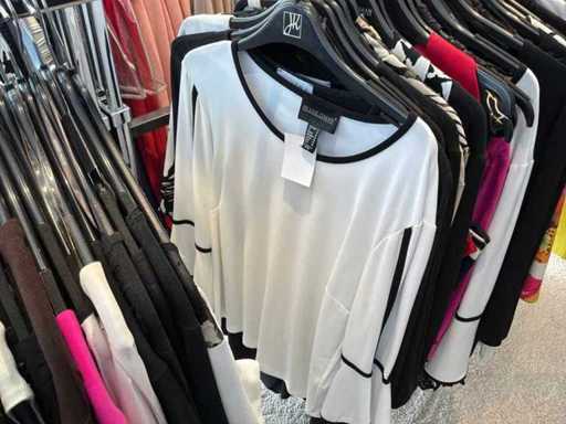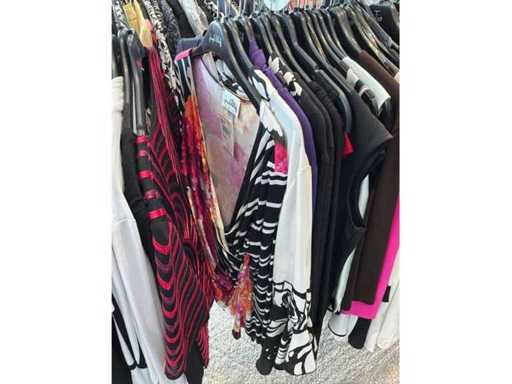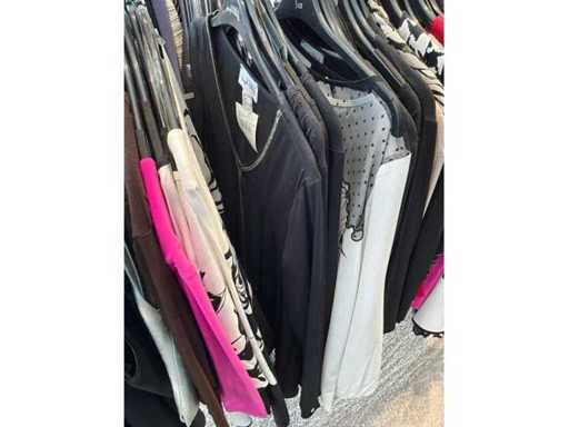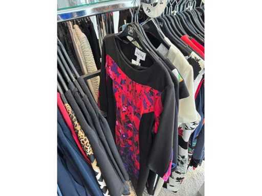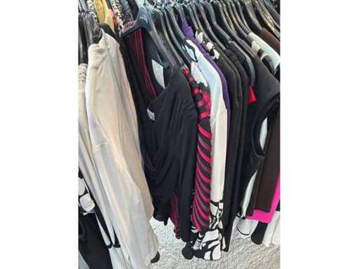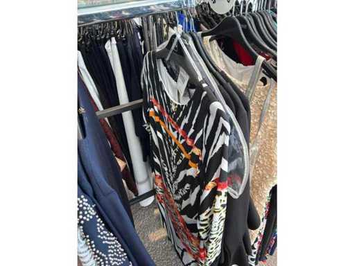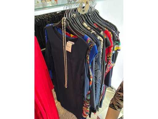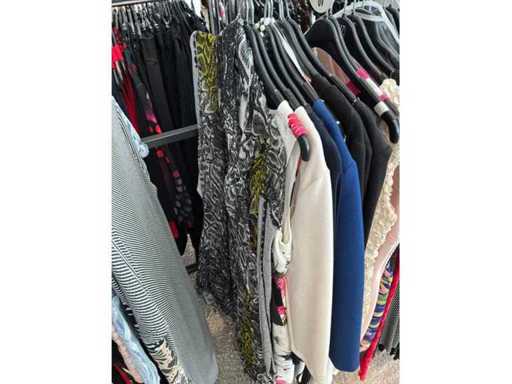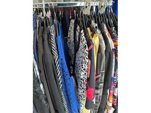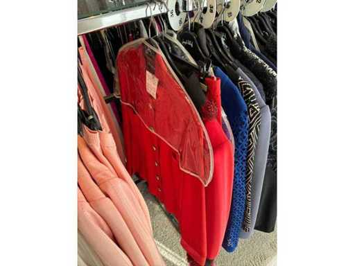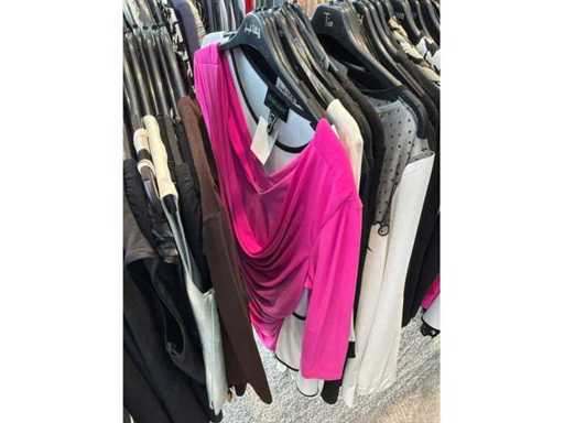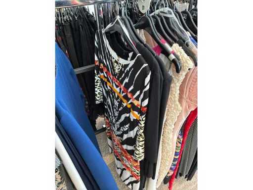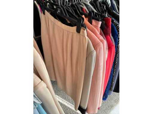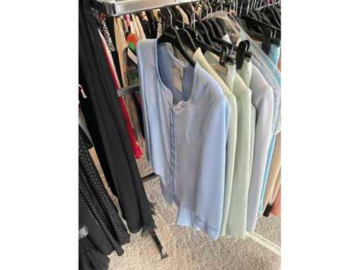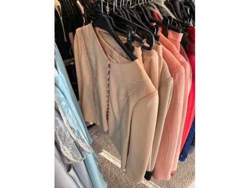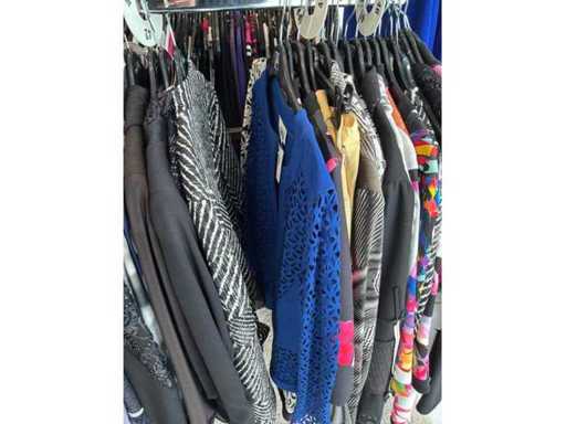 Bestehend aus: Blusen, Oberteilen, Kernen, Röcken, Hosen und einer Jeansweste/Körperwärmer. Von den Marken: Rabe, Faber Women, Joseph Ribkoff, Tom Bowker, Sommermann, Liola, Isabel de Pedro und Airfield. Sie variieren in den Größen von 36 bis 46. Kleiderregale sind nicht enthalten.