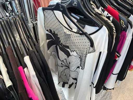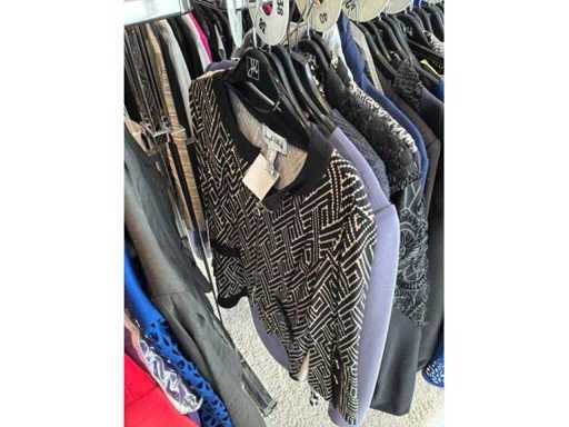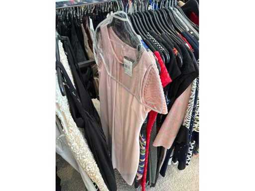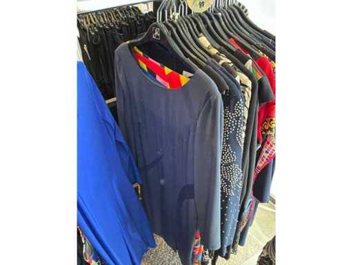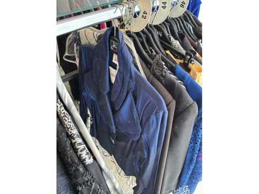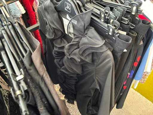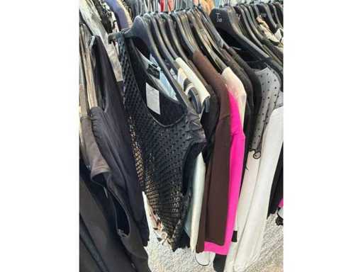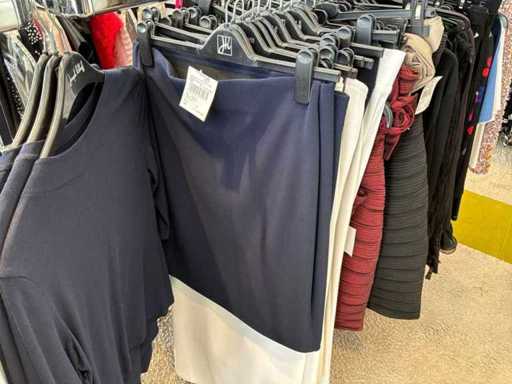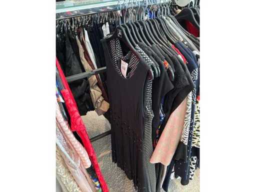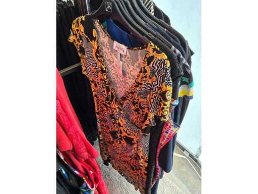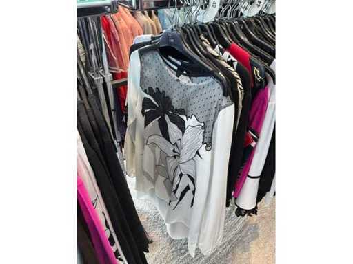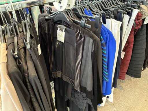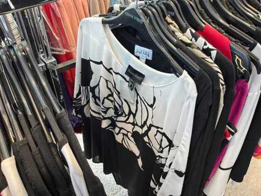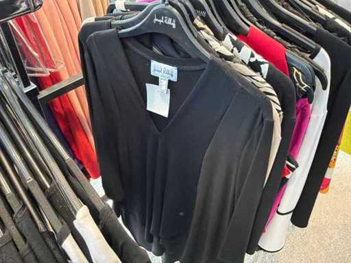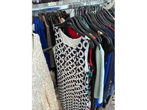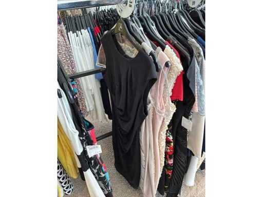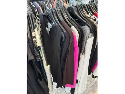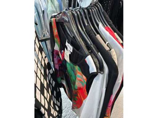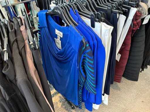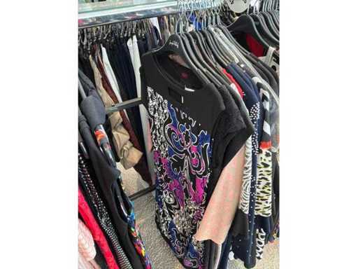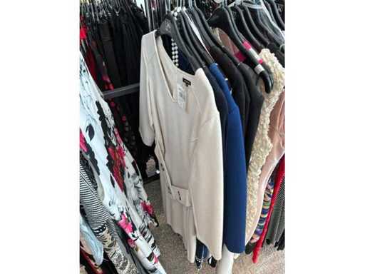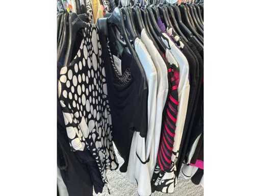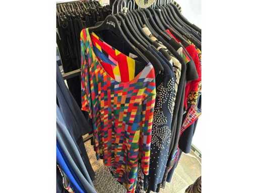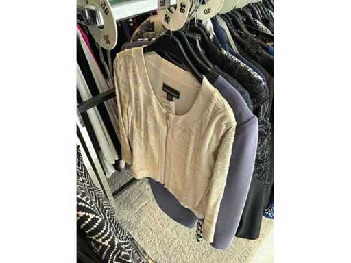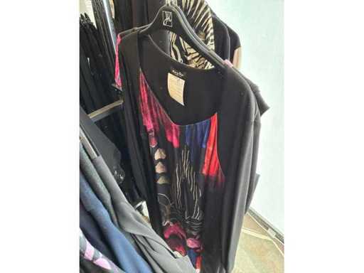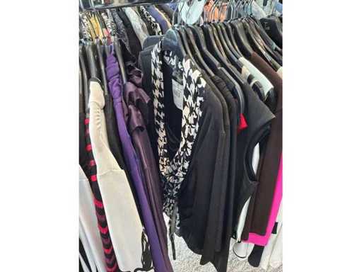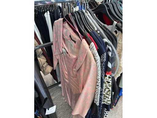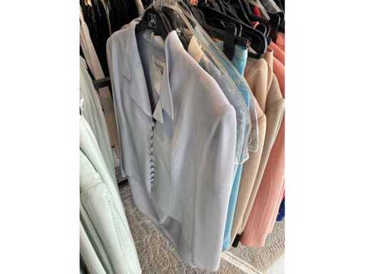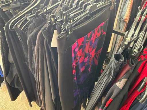 Bestehend aus: Blusen, Oberteilen, Kernen, Röcken, Hosen und einer Jeansweste/Körperwärmer. Von den Marken: Rabe, Faber Women, Joseph Ribkoff, Tom Bowker, Sommermann, Liola, Isabel de Pedro und Airfield. Sie variieren in den Größen von 36 bis 46. Kleiderregale sind nicht enthalten.