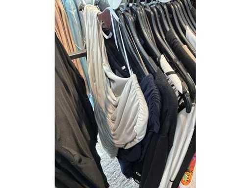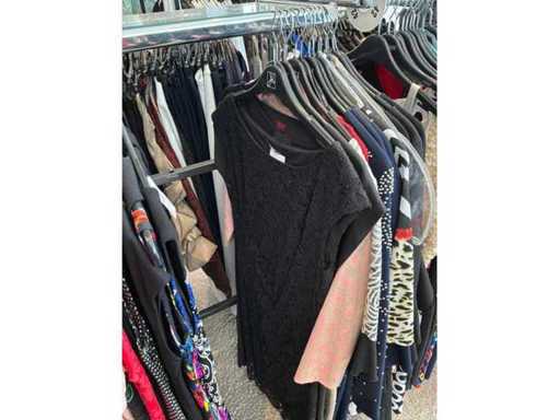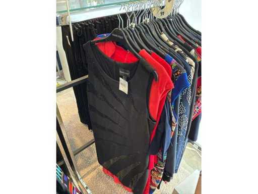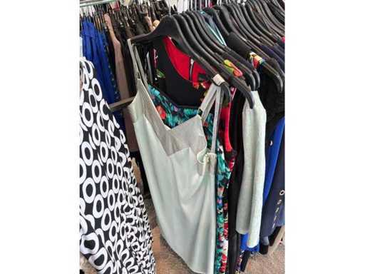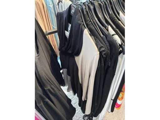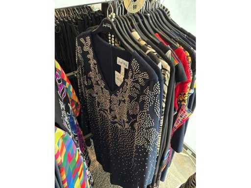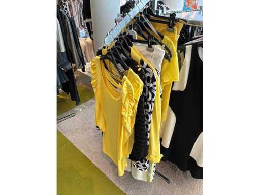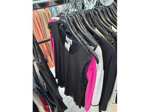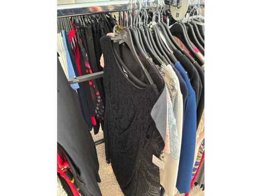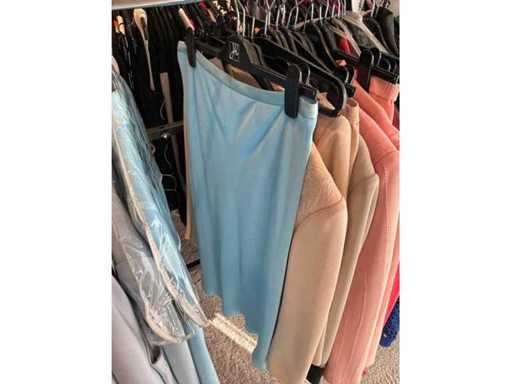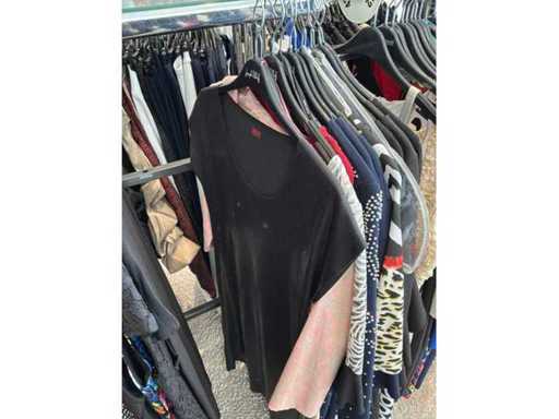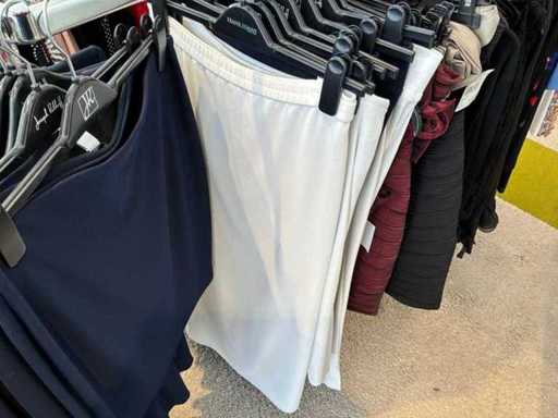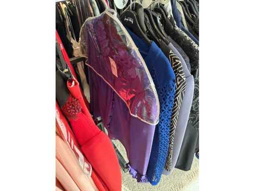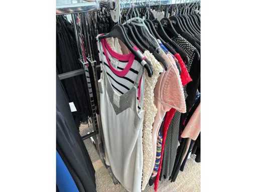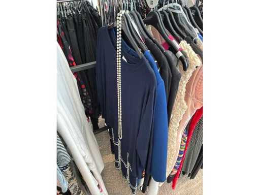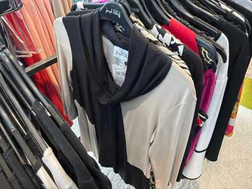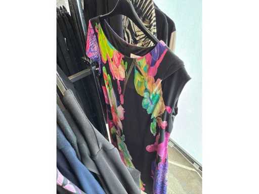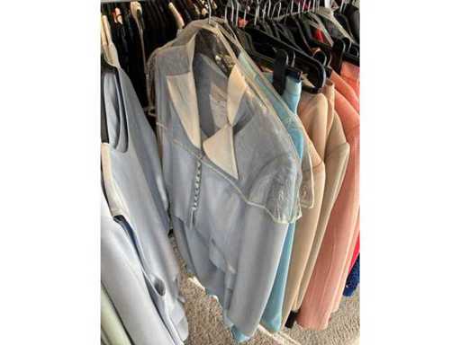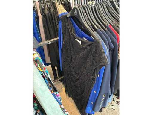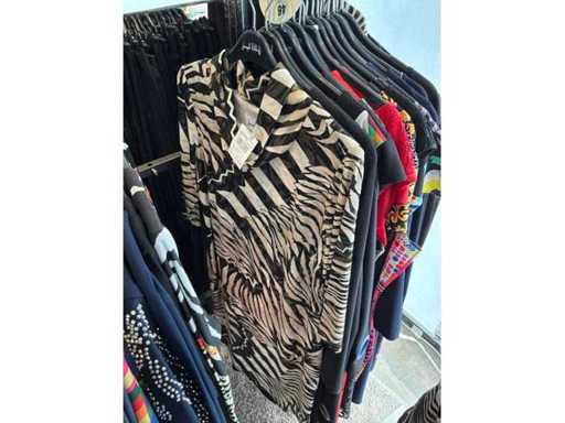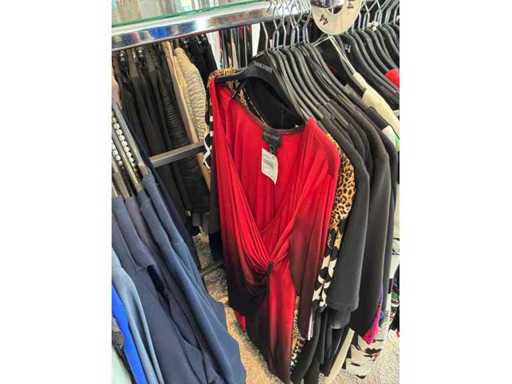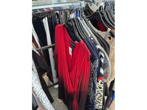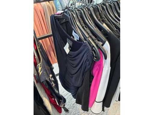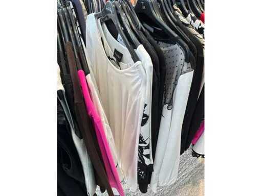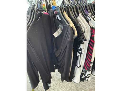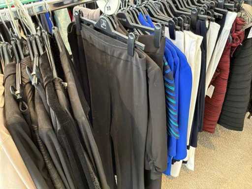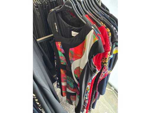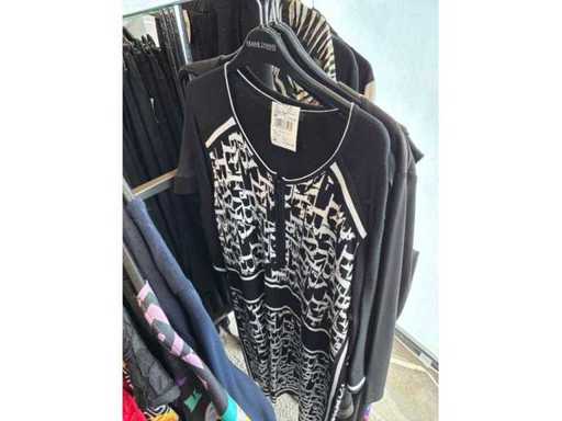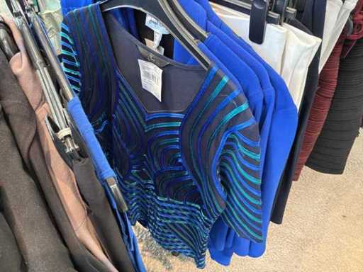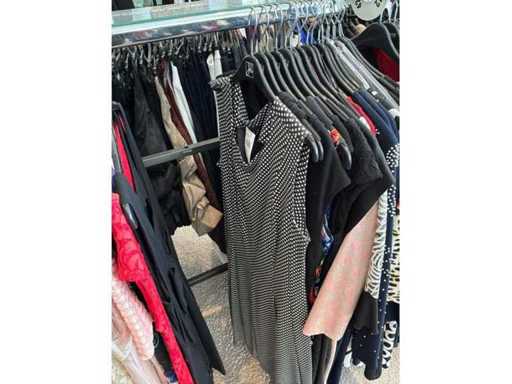 Bestehend aus: Blusen, Oberteilen, Kernen, Röcken, Hosen und einer Jeansweste/Körperwärmer. Von den Marken: Rabe, Faber Women, Joseph Ribkoff, Tom Bowker, Sommermann, Liola, Isabel de Pedro und Airfield. Sie variieren in den Größen von 36 bis 46. Kleiderregale sind nicht enthalten.
