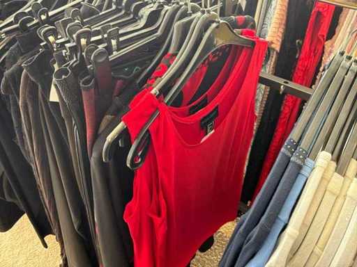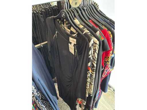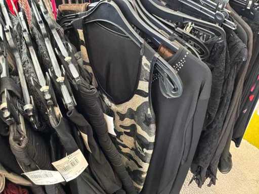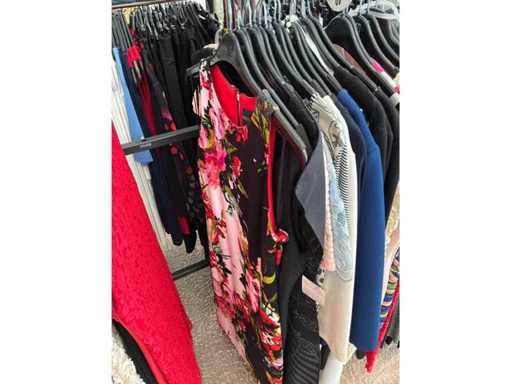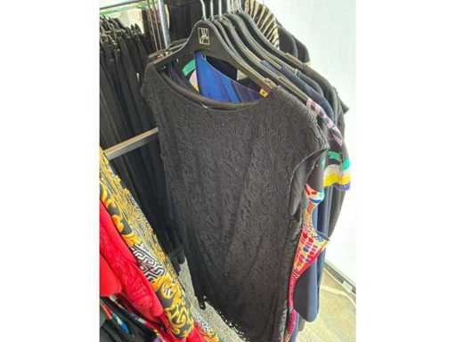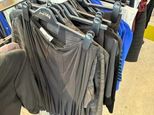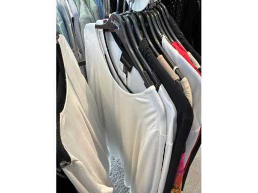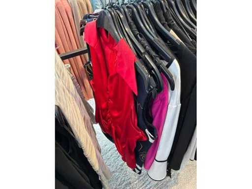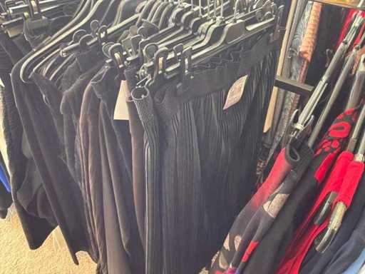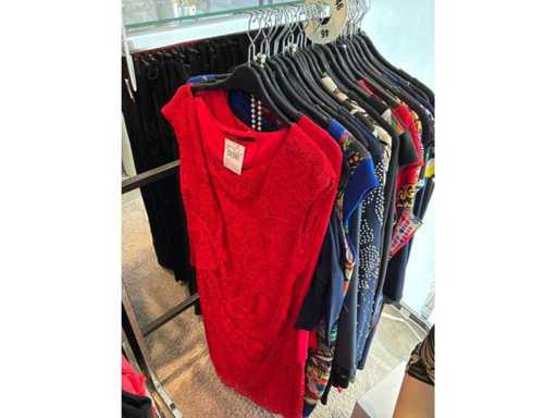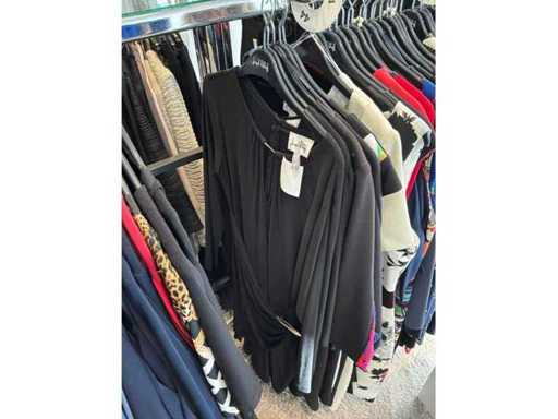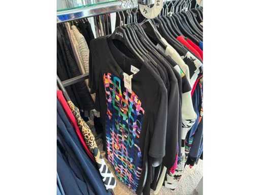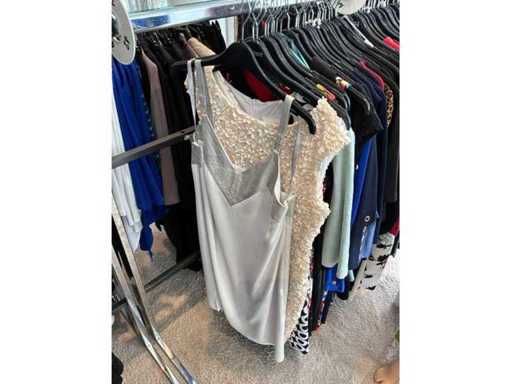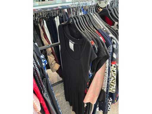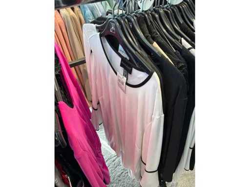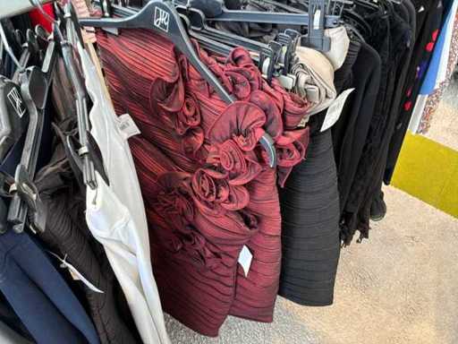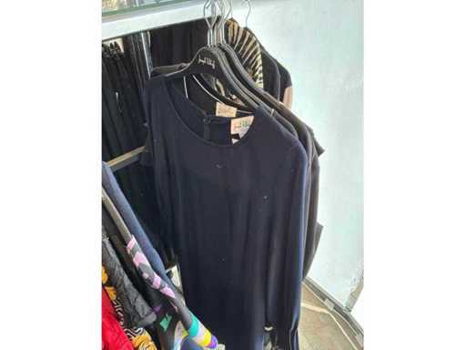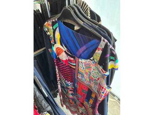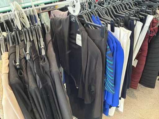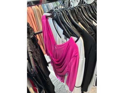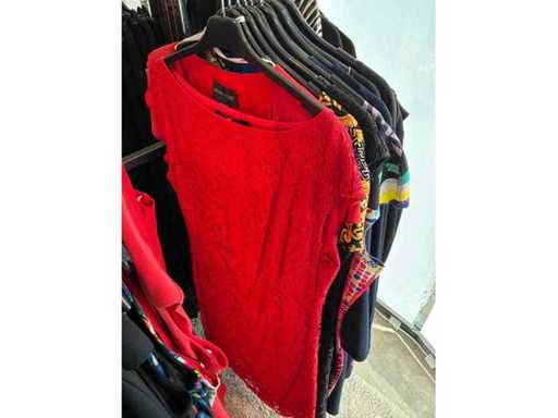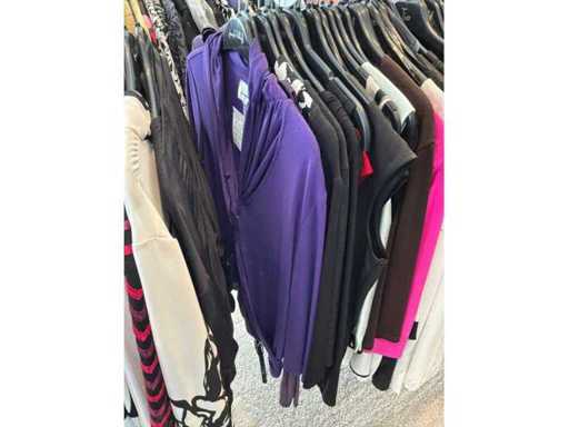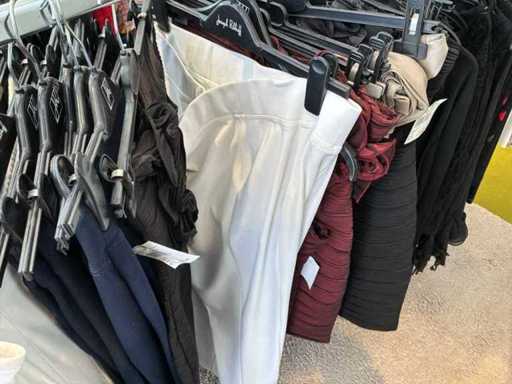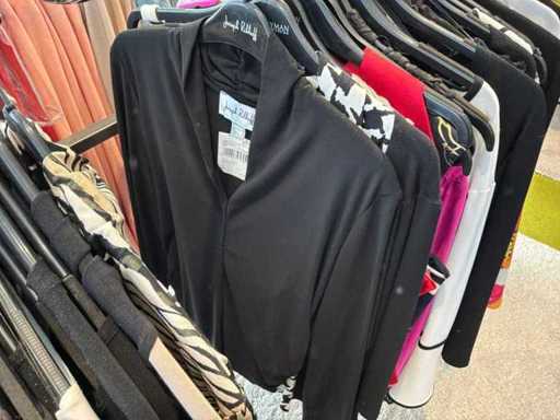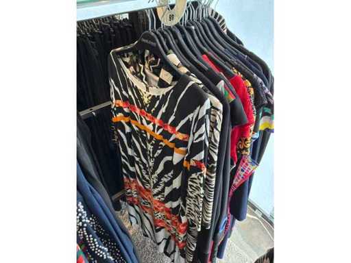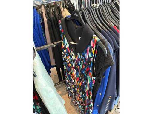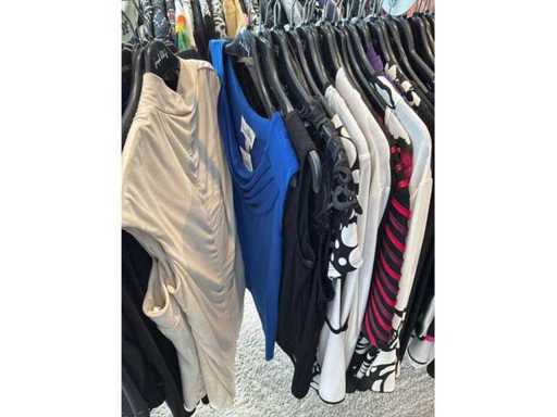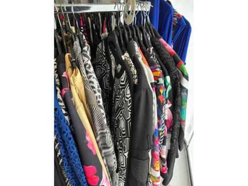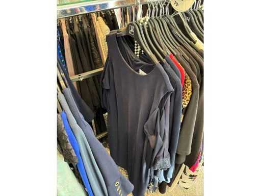 Bestehend aus: Blusen, Oberteilen, Kernen, Röcken, Hosen und einer Jeansweste/Körperwärmer. Von den Marken: Rabe, Faber Women, Joseph Ribkoff, Tom Bowker, Sommermann, Liola, Isabel de Pedro und Airfield. Sie variieren in den Größen von 36 bis 46. Kleiderregale sind nicht enthalten.