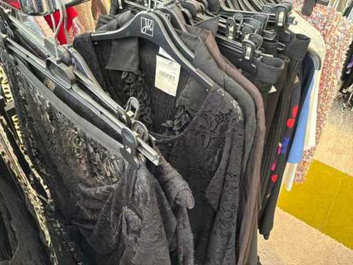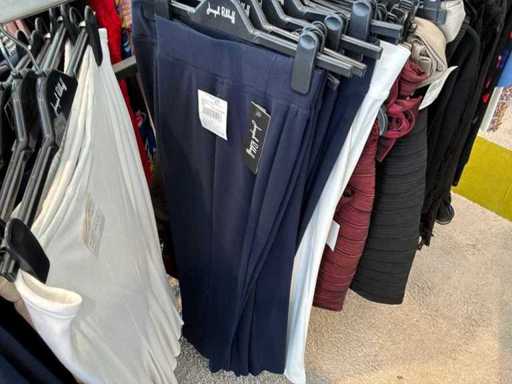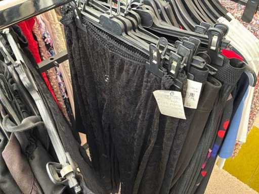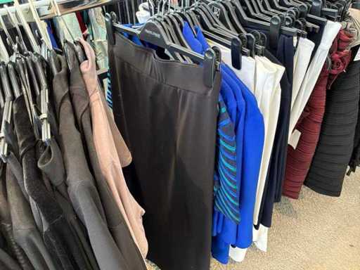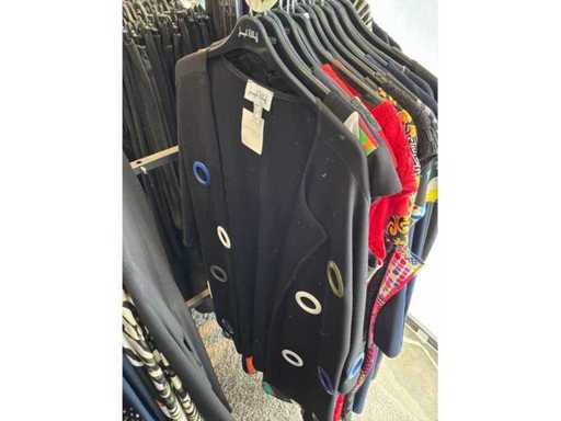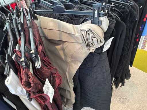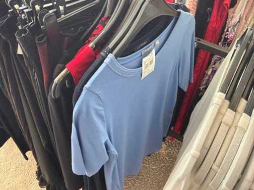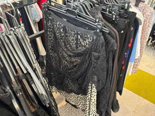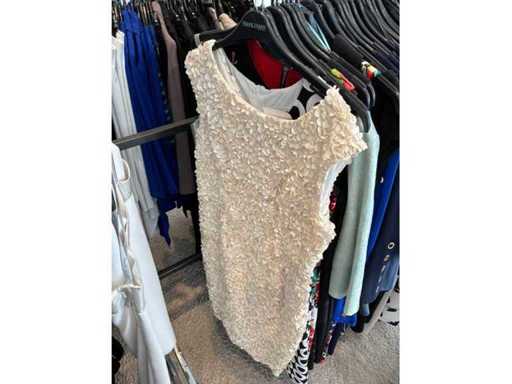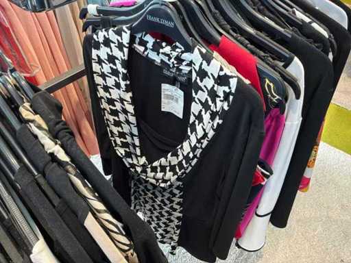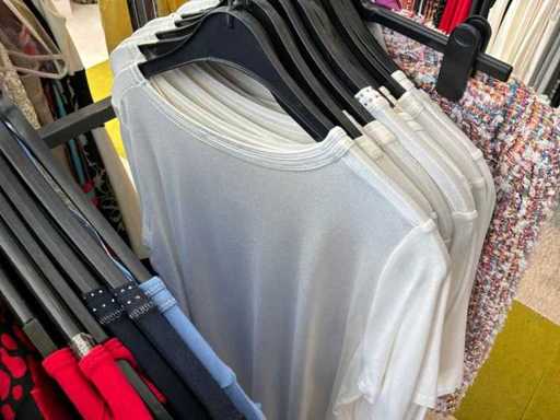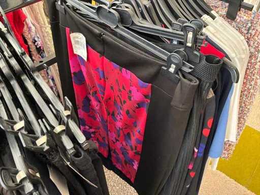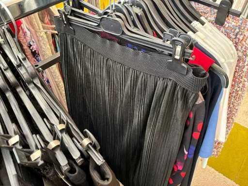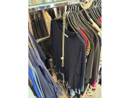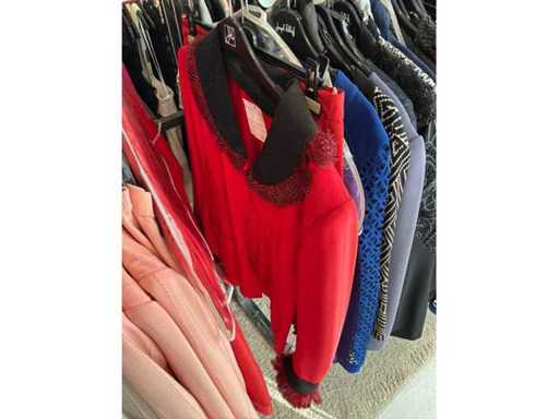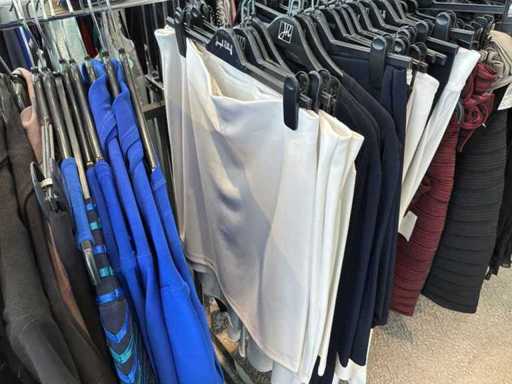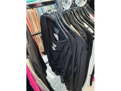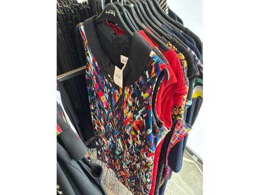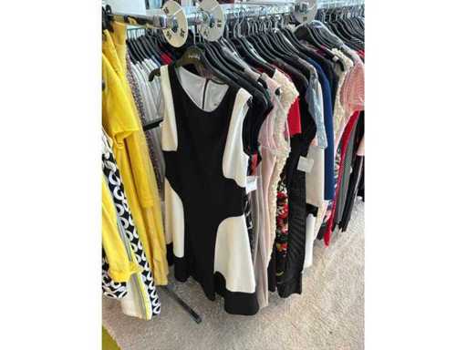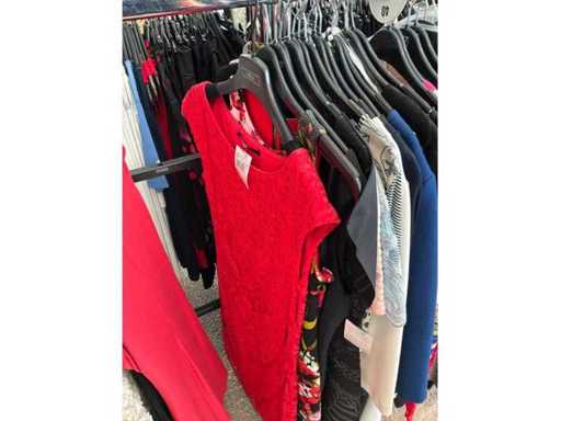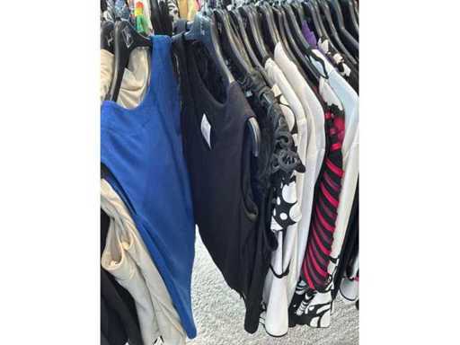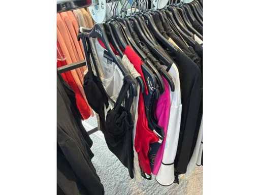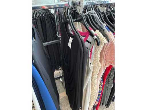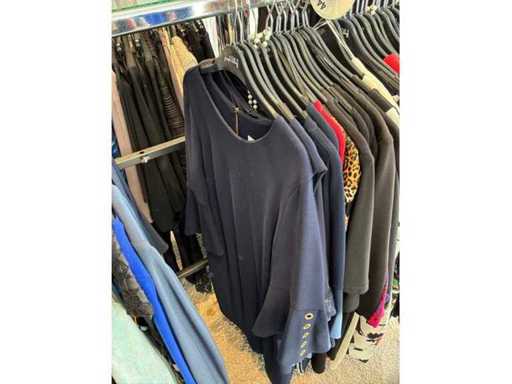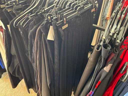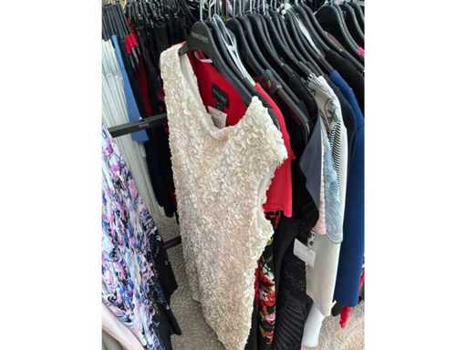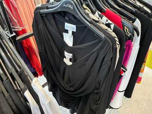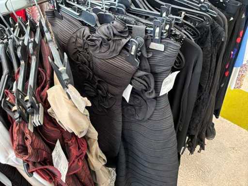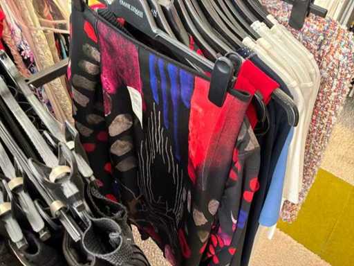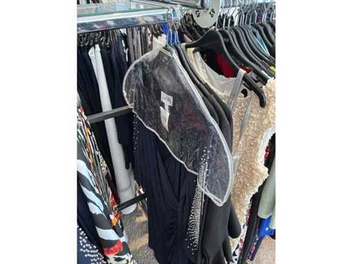 Bestehend aus: Blusen, Oberteilen, Kernen, Röcken, Hosen und einer Jeansweste/Körperwärmer. Von den Marken: Rabe, Faber Women, Joseph Ribkoff, Tom Bowker, Sommermann, Liola, Isabel de Pedro und Airfield. Sie variieren in den Größen von 36 bis 46. Kleiderregale sind nicht enthalten.