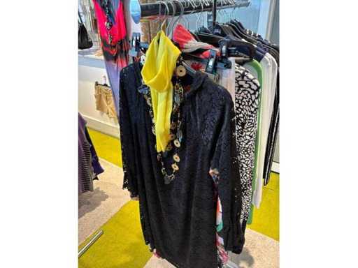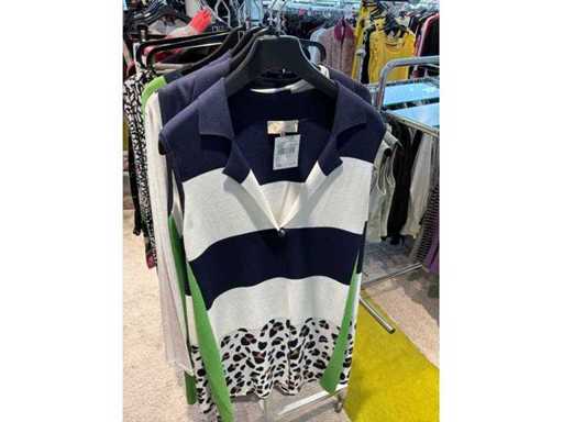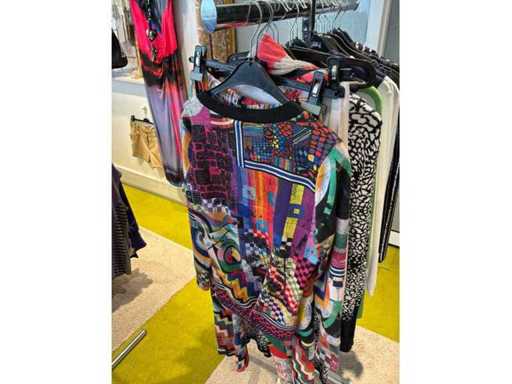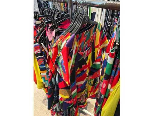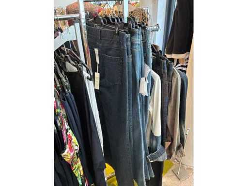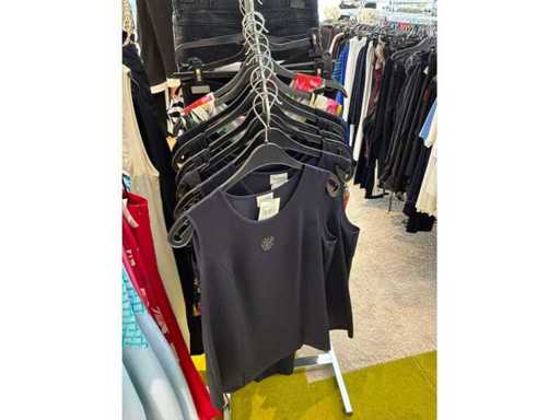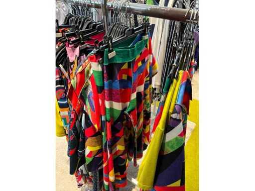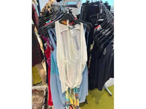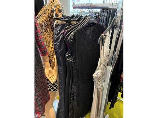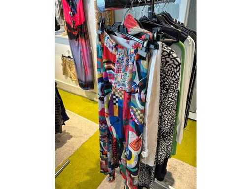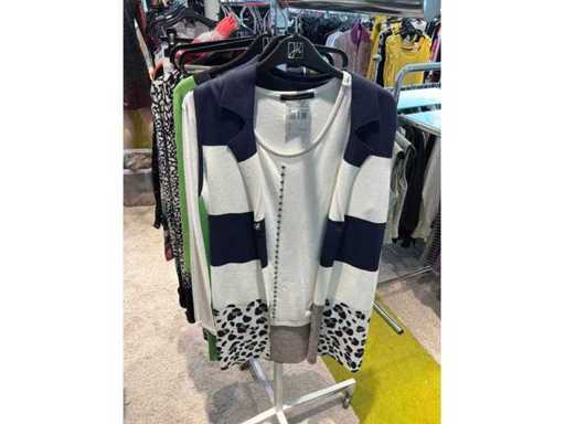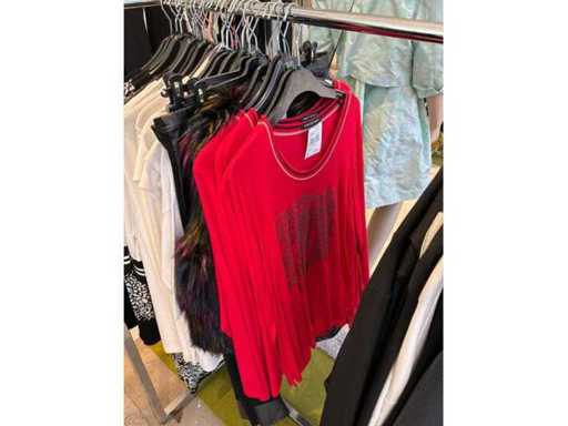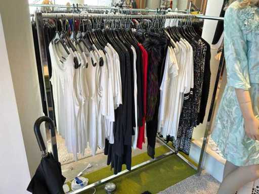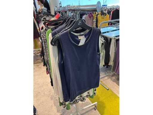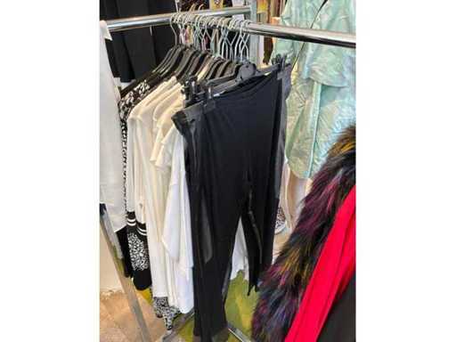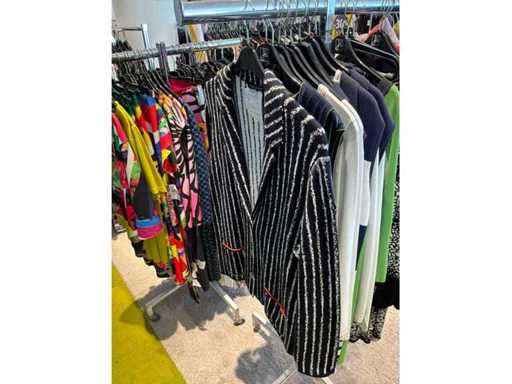 Bestehend aus: Blusen, Oberteilen, Kernen, Röcken, Hosen und einer Jeansweste/Körperwärmer. Von den Marken: Rabe, Faber Women, Joseph Ribkoff, Tom Bowker, Sommermann, Liola, Isabel de Pedro und Airfield. Sie variieren in den Größen von 36 bis 46. Kleiderregale sind nicht enthalten.