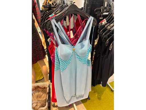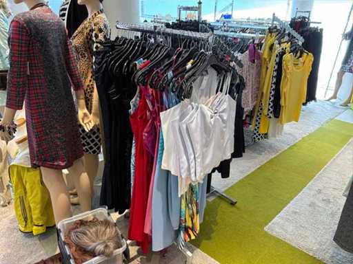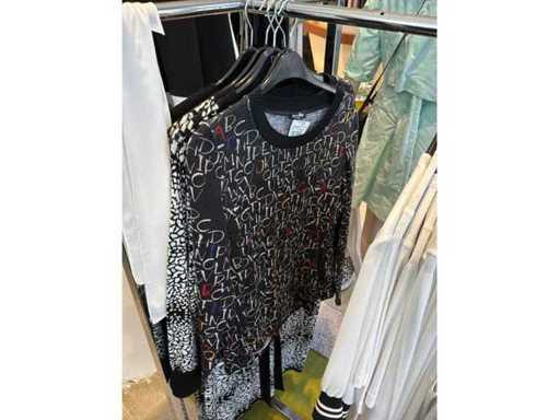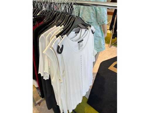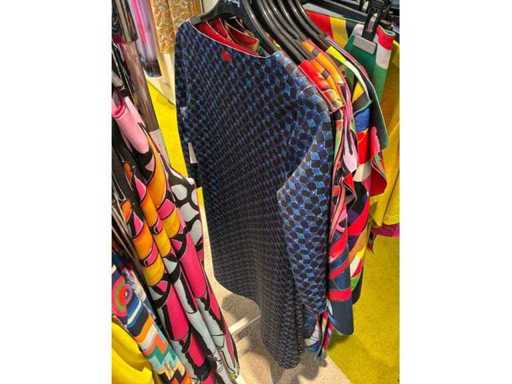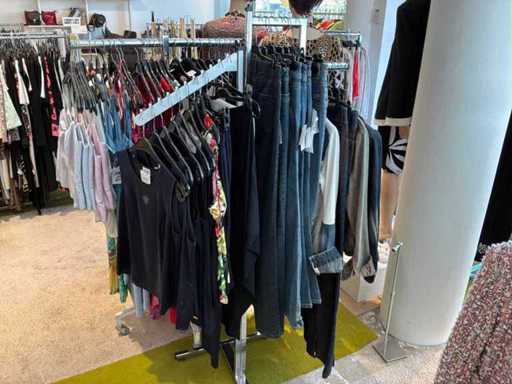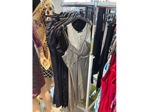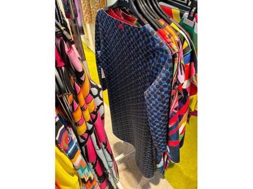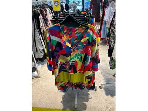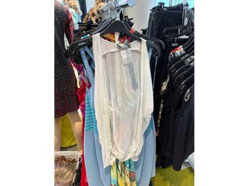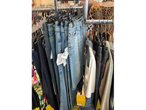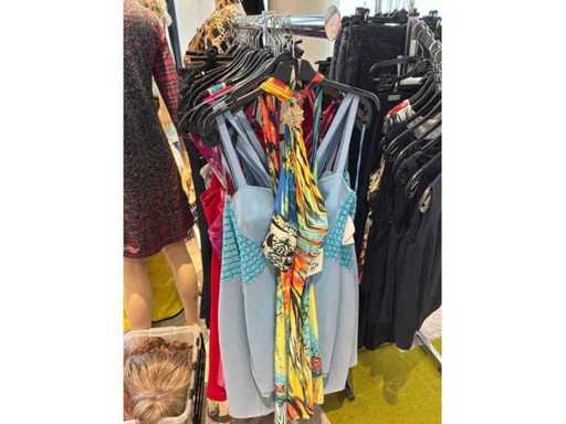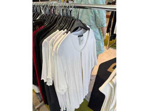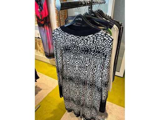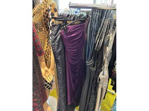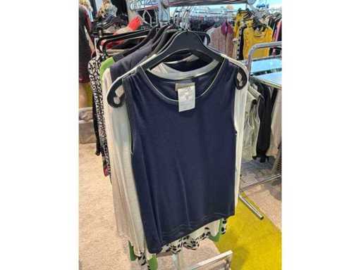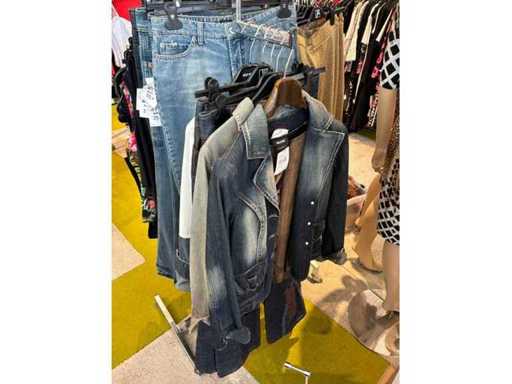 Bestehend aus: Blusen, Oberteilen, Kernen, Röcken, Hosen und einer Jeansweste/Körperwärmer. Von den Marken: Rabe, Faber Women, Joseph Ribkoff, Tom Bowker, Sommermann, Liola, Isabel de Pedro und Airfield. Sie variieren in den Größen von 36 bis 46. Kleiderregale sind nicht enthalten.
