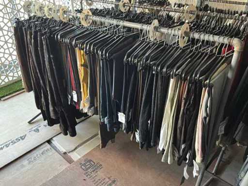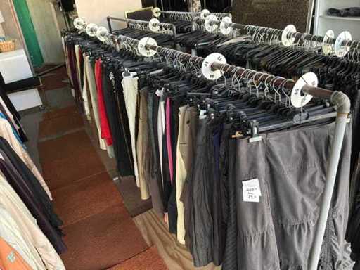 Unter anderem die Marken: Eroke, Ichi, Olsen, MC Planet, Phard, Reporter, Zaspel. Sie variieren in den Größen von 36 bis 42. Kleiderregale inklusive.
