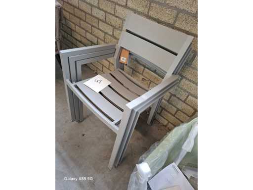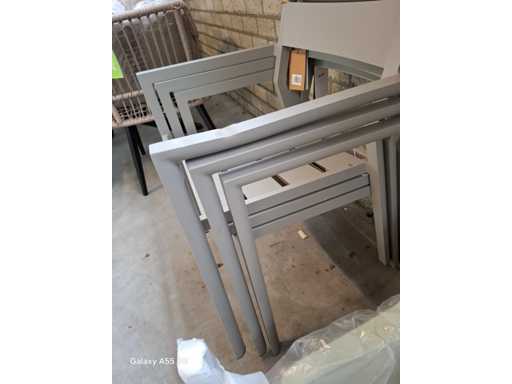 Der elegant lackierte Gartenstuhl besteht aus einem aluminium-pulverbeschichteten Rahmen, Sitz und Rückenlehne flach. Die Tatsache, dass der Sitz aus Aluminium besteht, bietet neben seiner Stabilität den großen Vorteil, dass er sehr leicht ist und der Stuhl leicht zu bewegen ist.