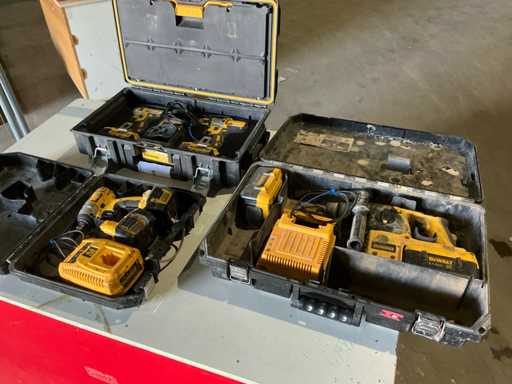 1x DC234 Drehhammer, mit 2x 36V Batterie und Ladegerät, s/n 2066109; 1x Schlagschrauber, ohne weitere Daten, mit 2x 14,4 V Batterie und Ladegerät; 1 Set bestehend aus DCD995 Schraubenbohrer, S/n 081668 und DCF886 Schraubendreher, S/n 970695, mit 2x 18V Akku und Ladegerät