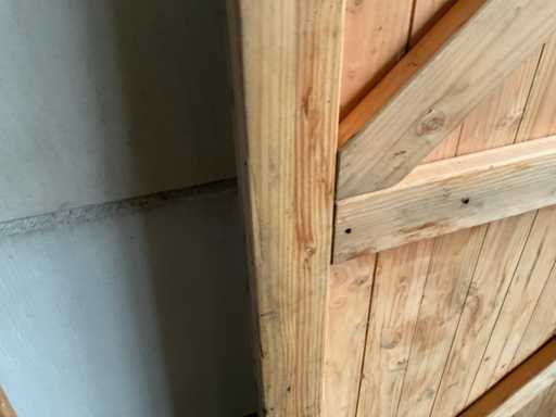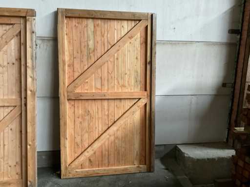 Douglasien-Außentür 215x120 cm. Ohne Scharniere und Schlösser. Beschädigt, siehe Fotos für Details.