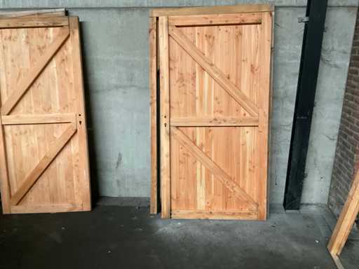 Douglasien-Außentür im Rahmen 215x120 cm. Ohne Scharniere und geschlossene Arbeit. Weitere Informationen finden Sie auf den Fotos.