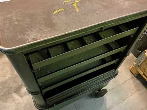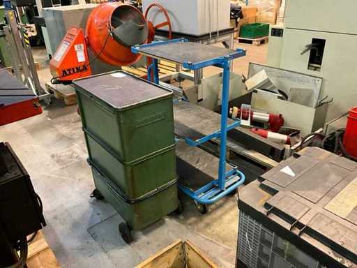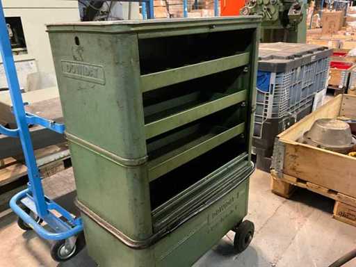 1x Dowidat-Werkzeugwagen mit 2x Schiebetür und 3 Schubladen, 1x Wagen mit 3x Regal