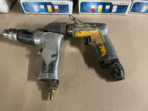 Verschiedene Gegenstände, darunter 6x Luftbohrer ungenutzt, 2x verschiedene Übungen; 1x pneumatischer Tacker, 1x Luftwerkzeug-Luftmeißel